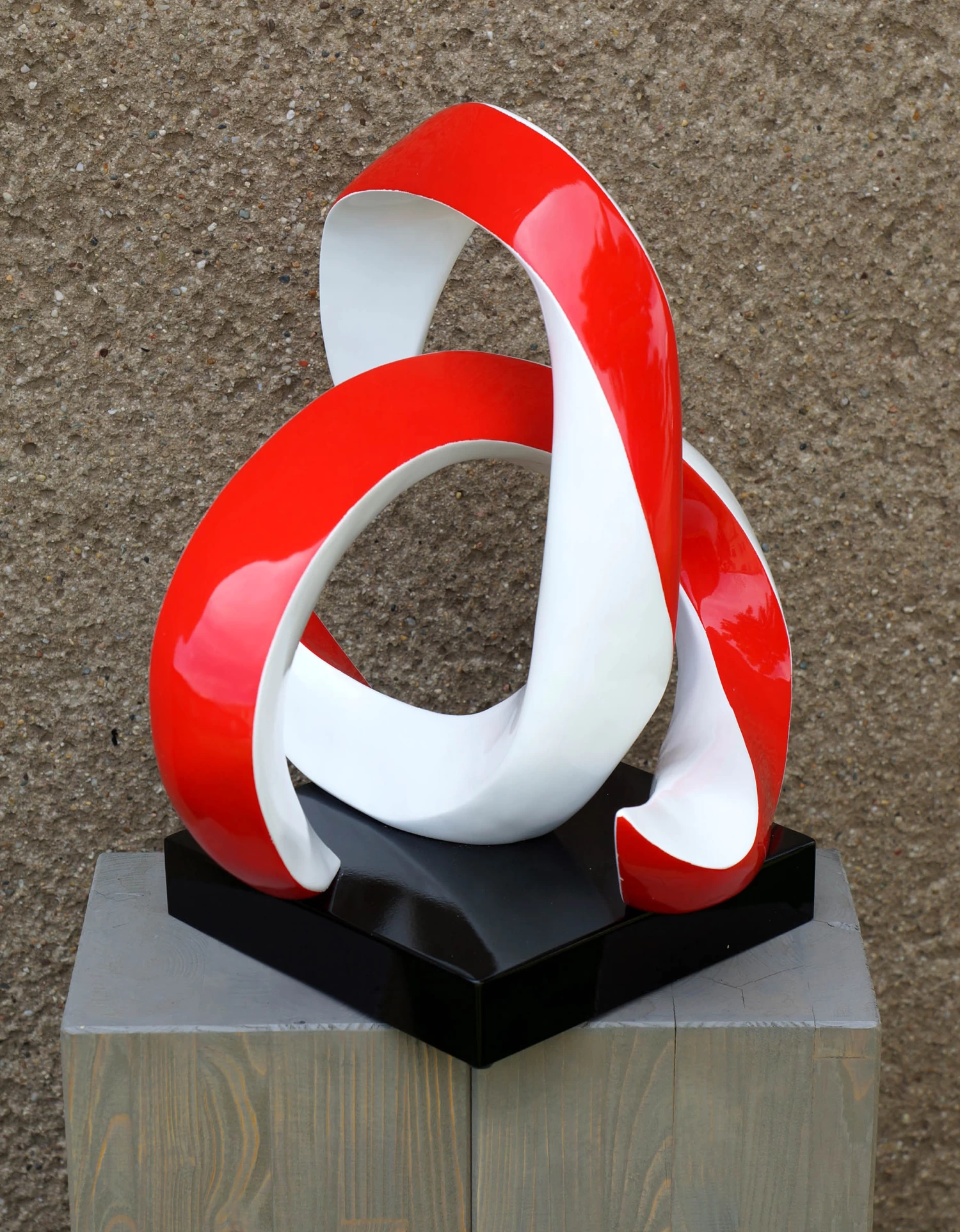 “Crossed Bands” is a work of the modern artist Martin Klein. The two-tone fiberglass object is mounted on a black resin base. “Crossed Bands” symbolizes quiet strength and dynamism – a collector’s item for fans of abstract and modern art. All of our sculptures were produced in a strictly limited edition.