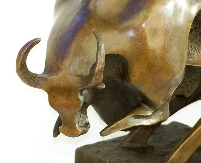 This graceful and strong animal sculpture was made by the famous Portuguese artist and sculptor Milo. Milo, usually known as Milo Fernando Lopez, studied art in Lisbon and is now working as a freelance artist for us and some other foundries. Animal sculptures like this one and nudes sculptures belong to his repertoire as well as modern and abstract art objects. Milo is married and living in a nice suburb of his hometown Lisbon, where he was born in 1955. The big bull sculpture is a very abstract portray of this animal. Bulls are not castrated male adults of the race Bos taurus, a cattle species. The female counterpart of the bull is called cow. The term “bull” also indentifies male bison, water buffalos, elephants, elks, moose, camels and whales.