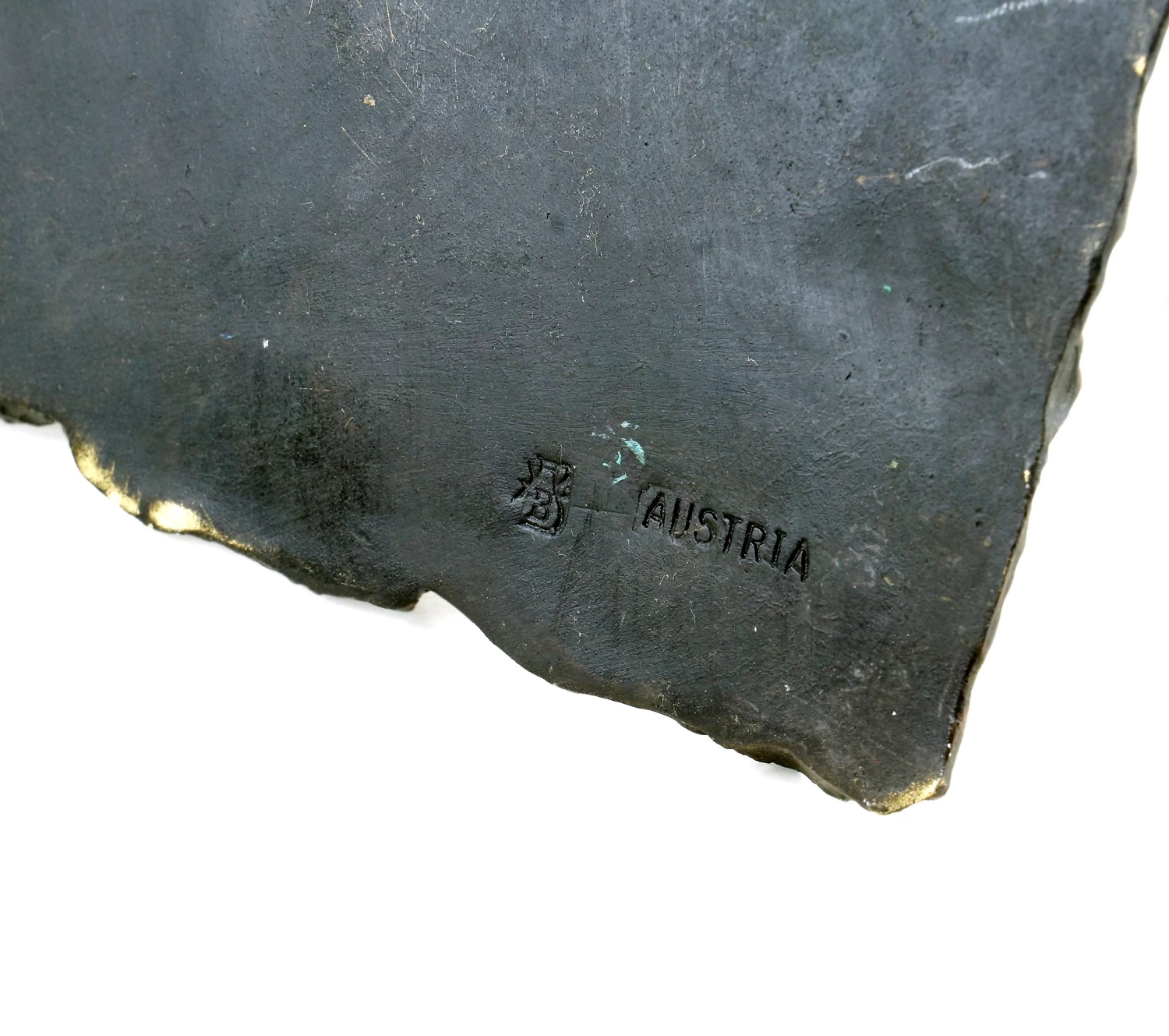 Lovingly painted by hand, this Vienna Bronze figurine shows an Arabian tailor during his work. This piece is a so-called carpet bronze, variants of which have been the motif of numerous works during the Vienna Bronze period. This Arabian figurine is characterised by a remarkable attention to detail, especially when it comes to the multiple tools and engravings. This small carpet bronze stands out thanks to its elaborate paint, which was done by hand, and which gives this stamped bronze figurine its final touch.