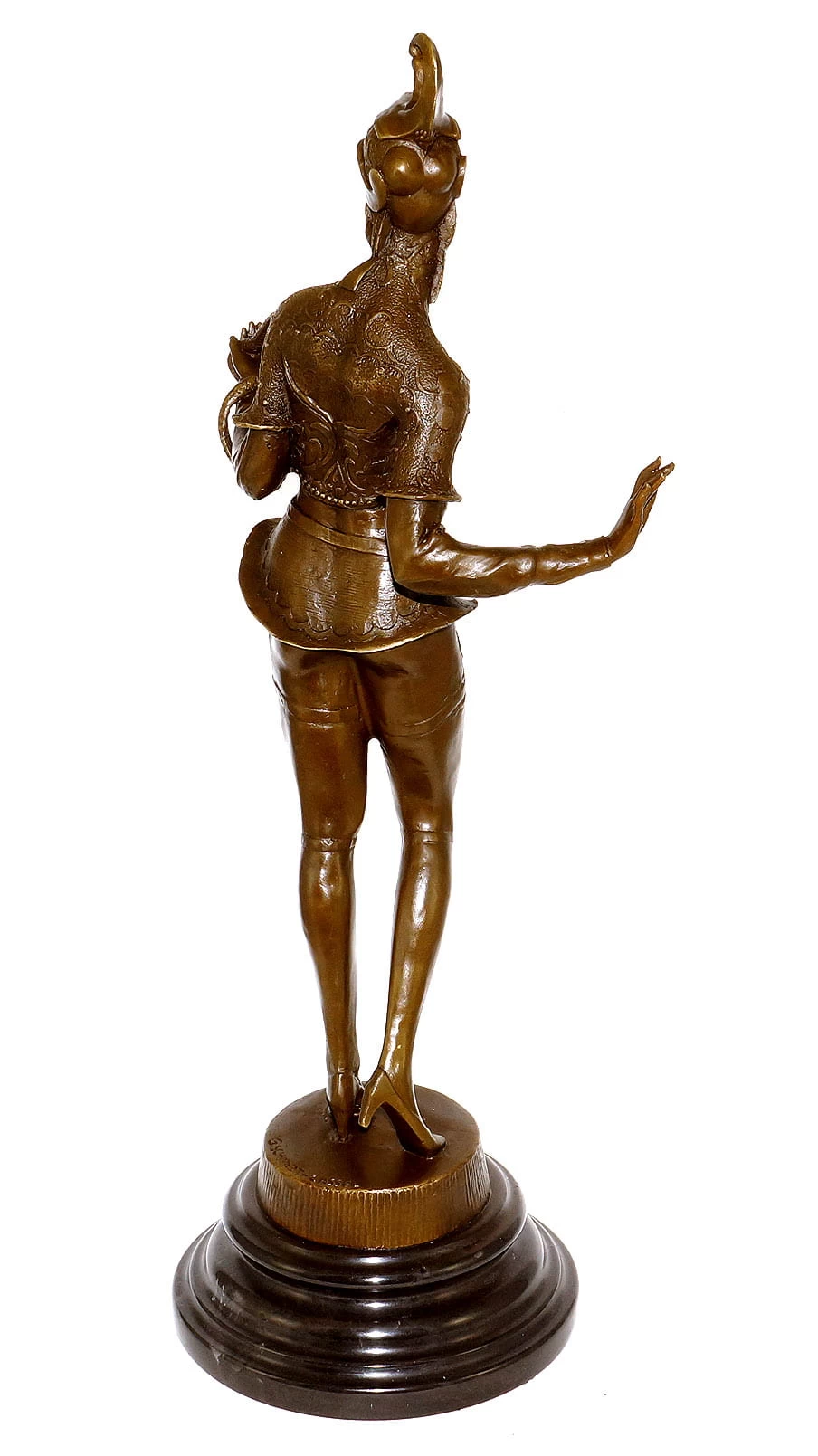 What a nice sculpture! Art Deco Bronze Dancer – designed by G. Schmidt- Cassel – a dancer with a snake on her arm. With a focus on detail, this bronze figure wears a fine ornament hat and extravagant clothes. Tthis proud dancer stands on a round marblebase. The artist signed on the bronzefoot! Finest quality bronze is used in producing this beautiful Art Deco Bronze.