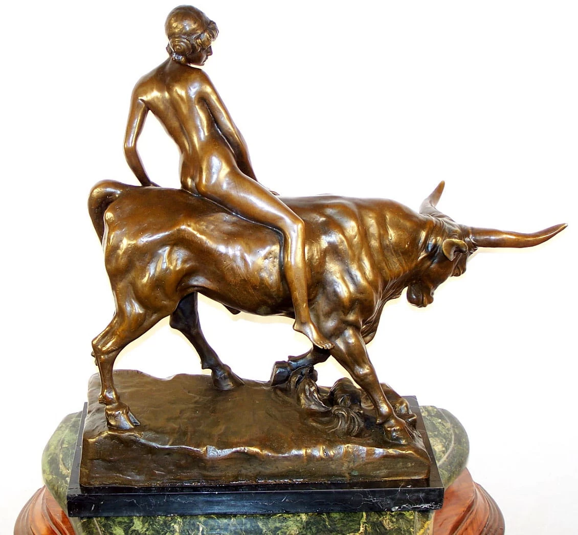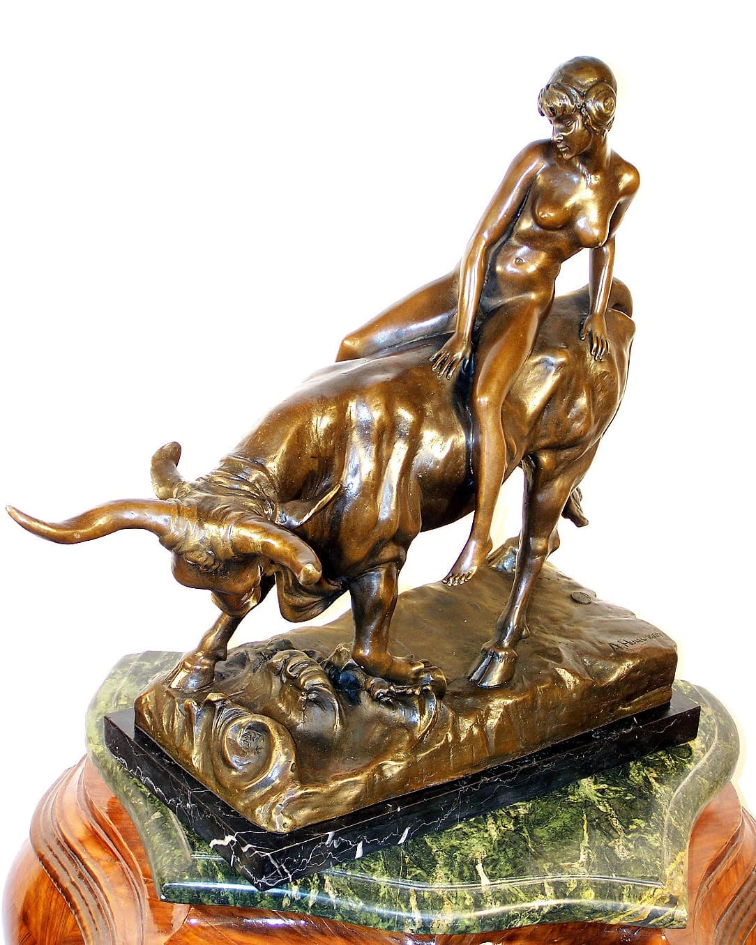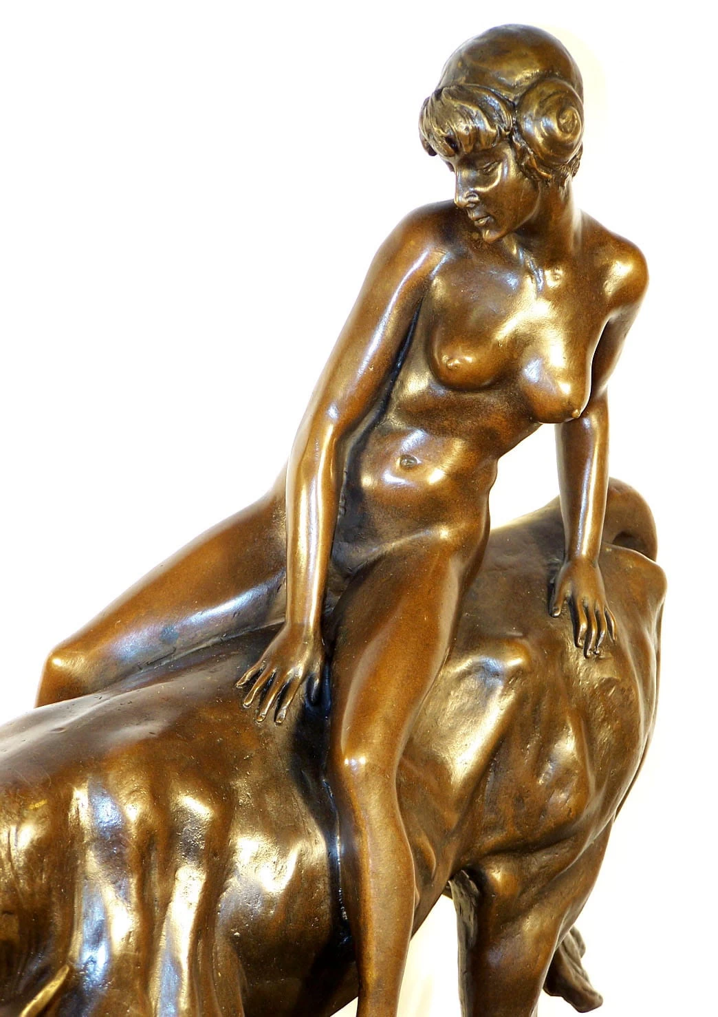 “Art Nouveau Bronze- nude Lady on buffalo bull, A. Hussmann”