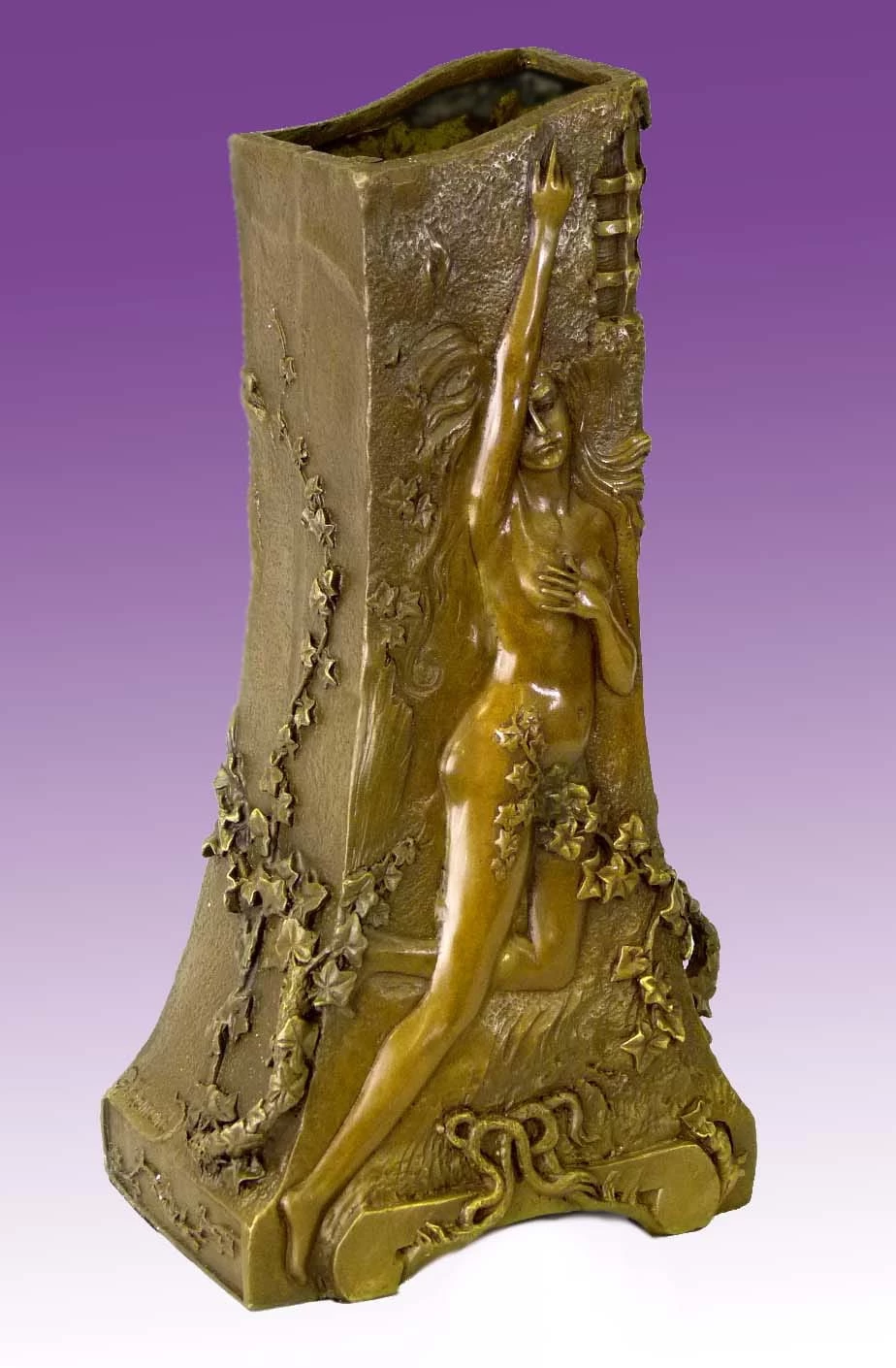This is a very beautiful erotic Art Nouveau bronze vase, which was created by the French artist Georges Flamand. Beautiful details and the impressive work of art make this vase to something very special. Beautiful naked women stretch out around the vase, that reminds of a tree along with natural and floral decorations are a typical sign of Art Nouveau bronzes. The vase is made of 100% bronze and just like its original it is signed with the signature of its sculptor, Georges Flamand.