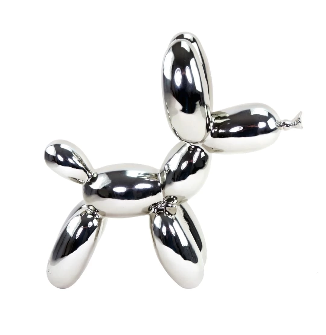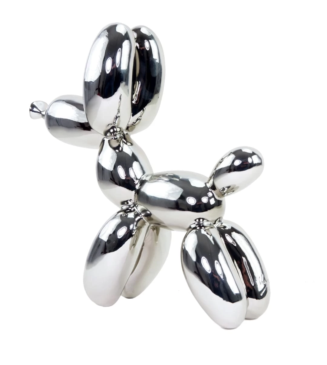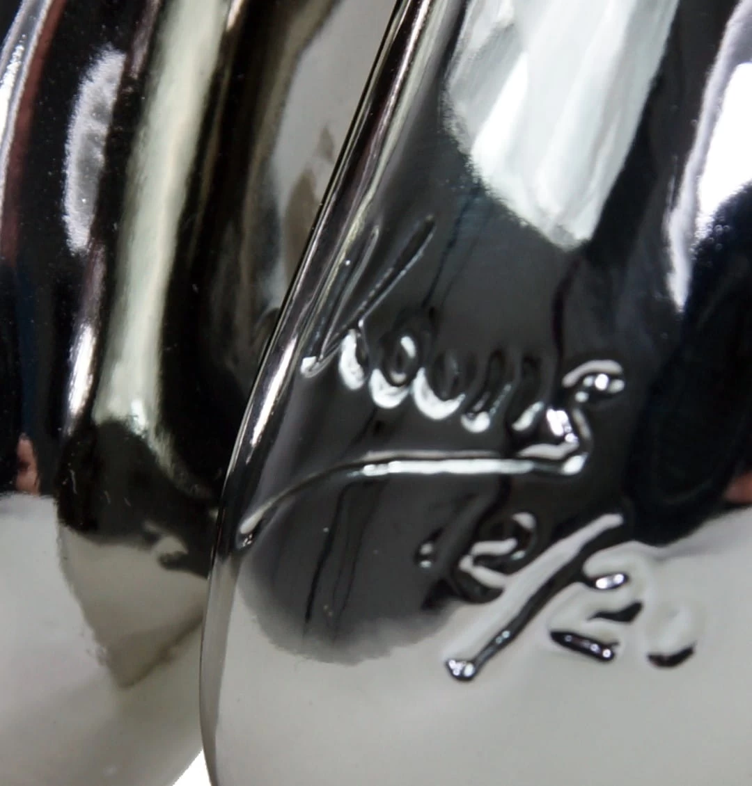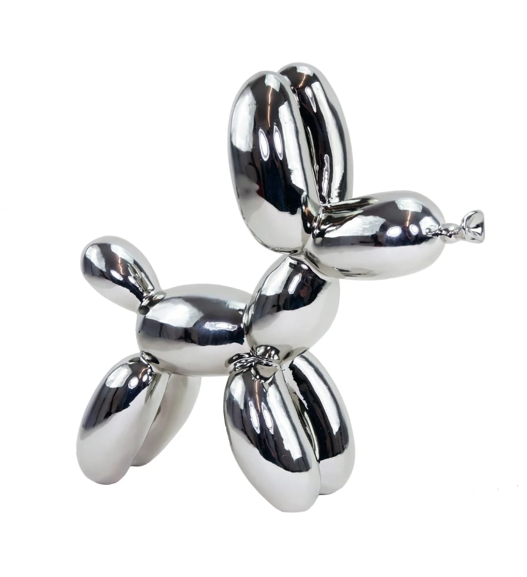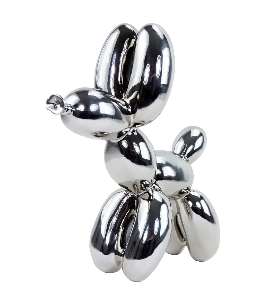 Balloon Dogs are among the most playful yet iconic sculptures of our time. His balloon animals, especially the dog motif, caused a worldwide sensation. By now, they have absolute cult status. In the case of this decorative bronze figurine, we present the Balloon Dog as a modern bronze sculpture. The approximately 26-centimetre-high, free-standing statue fits seamlessly into the series of high-gloss balloon animals that are central to Jeff Koons‘ artistic work. The limited Neo Pop Art sculpture, made of 100% bronze, has been galvanically refined in a silver colour. It is signed and consecutively numbered. The motif perfectly imitates the shape of a balloon dog, like the ones you get at the fair. At the same time, a successful abstraction makes it a modern table sculpture that can be positioned flexibly and definitely does not miss its effect.