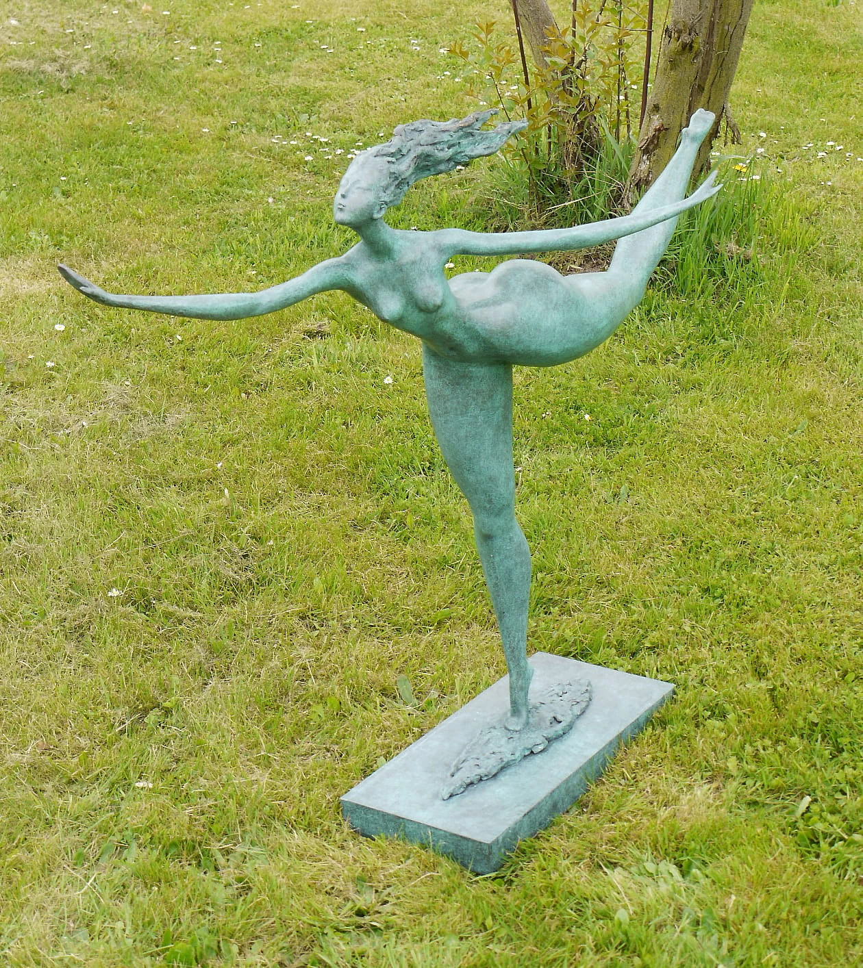 The garden sculpture was manufactured as a wax model. It is provided with the signature of the artist Milo and consists of fine bronze. Strict quality control guarantee high quality of our products.