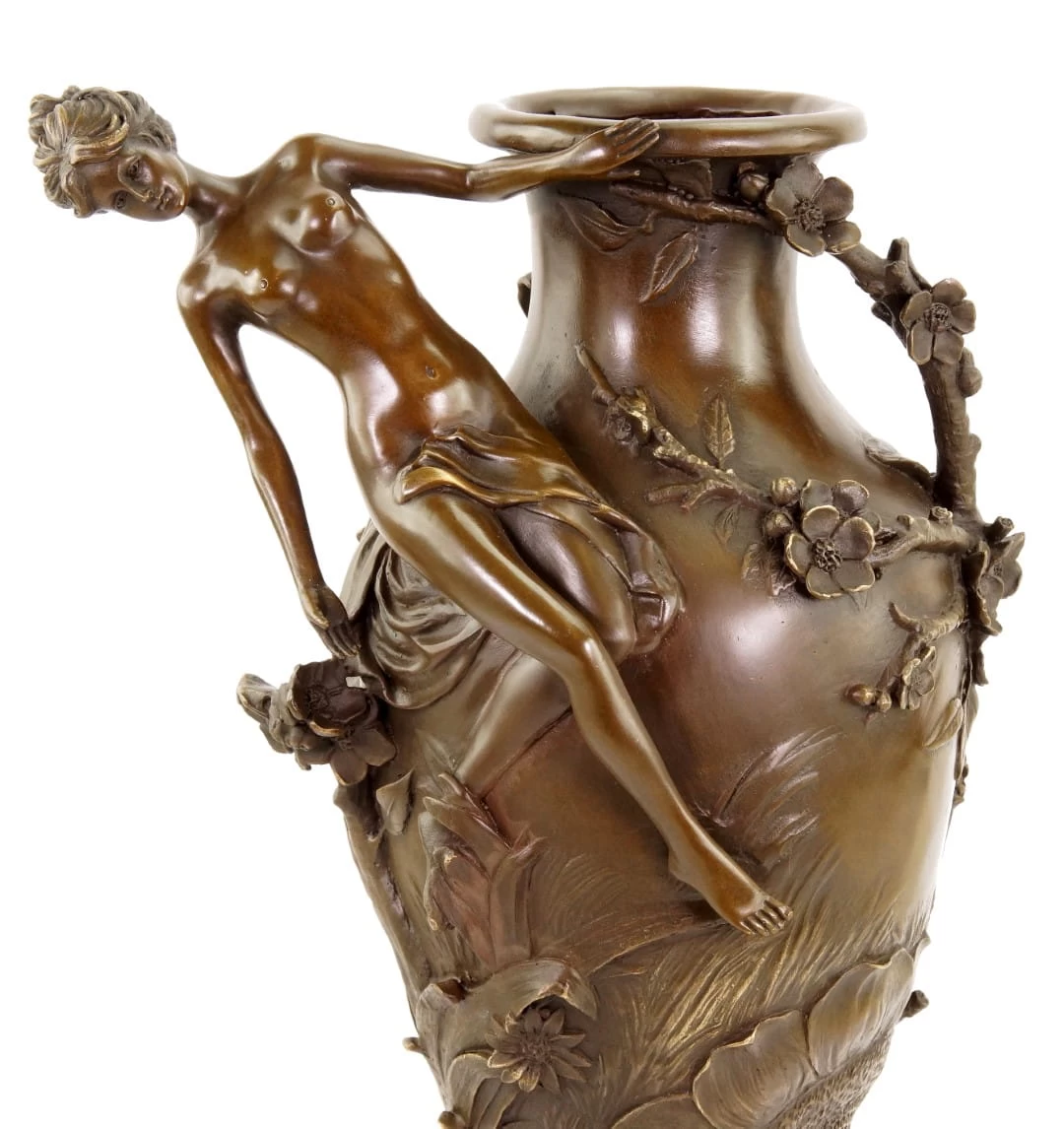“Bronze Art Nouveau Vase – signed Moreau – Erotic Nude”