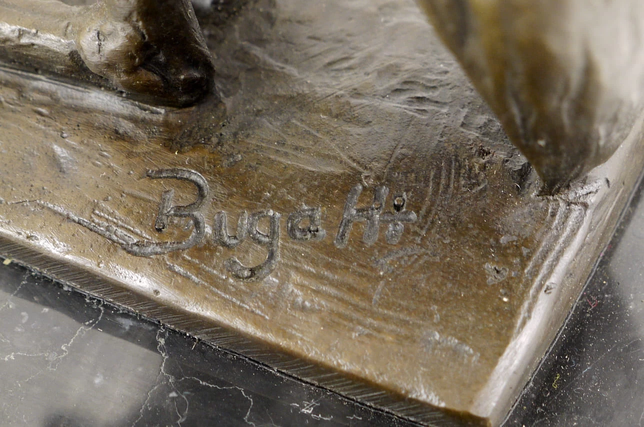 This extraordinary bird that was originally created by Rembrandt Bugatti, is a Marabou Stork, a species found in Africa. The Marabou Stork is a large wading bird within the stork family breeds in Africa, south of the Sahara. Bugatti’s sculpture is characterized by a complex surface structure and is mounted on a black marble base, marked with the signature of the artist.