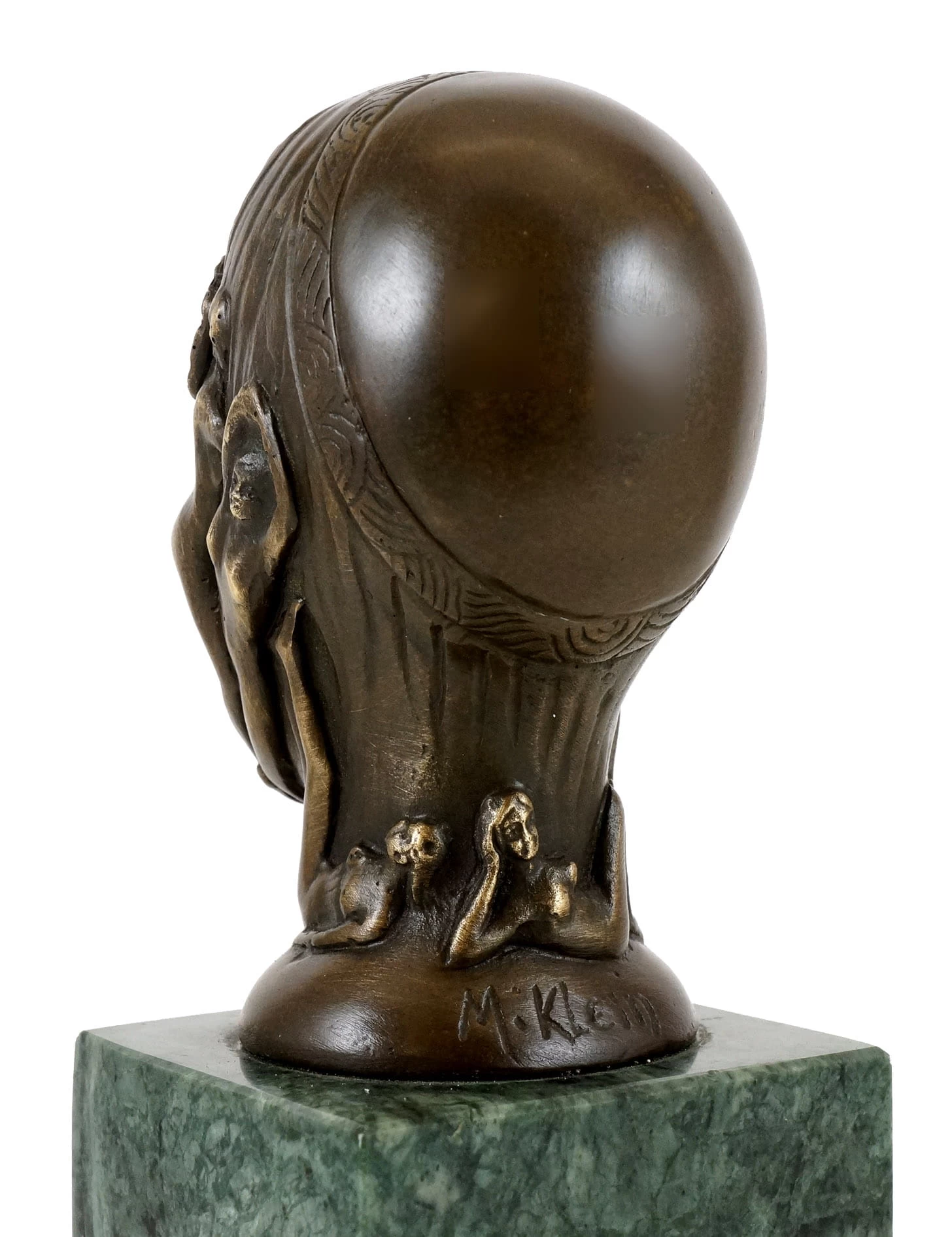 “Bronze Figure – Head with relief-like Female Nudes – M. Klein”
