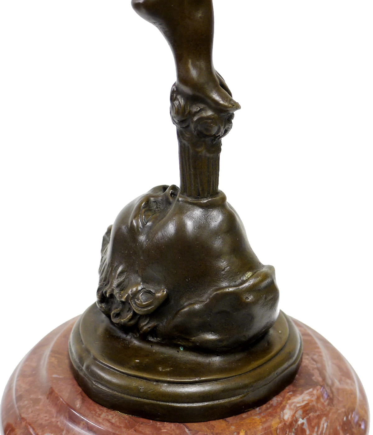 Hermes, a figure of Greek mythology, is mostly known in his role as messenger of the gods. Moreover, Hermes is also patron of traffic, travelers, merchants and shepherds. He was second youngest of the Olympian gods. In Roman mythology, the Hermes was identified with the Roman god Mercury. The Hermes sculpture by Giovanni da Bologna – in short: Giambologna – is probably one of the most famous plastic representations of the god. “The Flying Mercury” reflects the Hermes balancing on a column of air, which is fed by the mouth of Zephyr. The young Hermes figure can be viewed from all sides – the overstretched body generates elegance and grace. The sculpture sits on a beautifully shaped marble base and is provided with the acquired from the original signature.