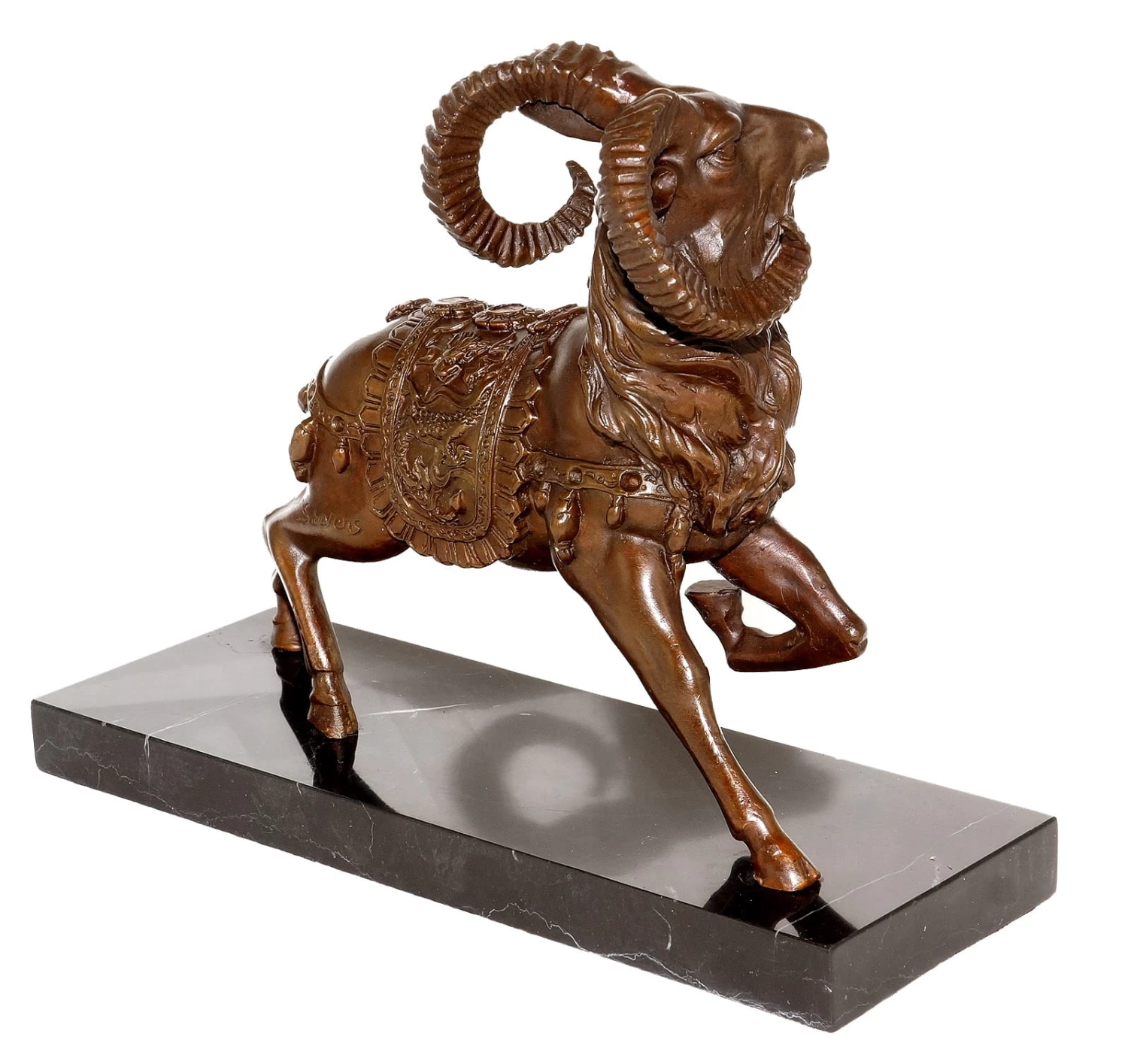 “Bronze Figure – Ram / Goat on Marble Base – Stevens”