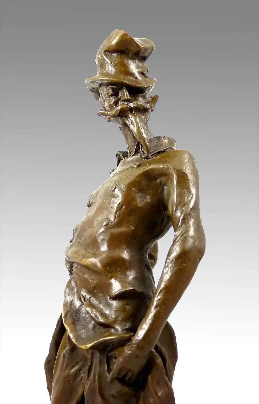 This Art Nouveau masterpiece by Honoré Daumier called “Ratapoil” portrays a Napoleonic public servant leaning on a walking cane. The abstract and yet fascinating appearance of this gentleman stuns the observer: many details such as the creases of the frock-coat and the long and pointy beard reveal the political background of this extraordinary bronze sculpture. With this abstract figurine, Honoré Daumier criticizes supporters of the Napoleonic regime – which is also revealed in the name itself: Ratapoil means “hairy rat”. Of course, the socket is signed by Daumier and the statue is casted directly from the original and made of 100% bronze.
