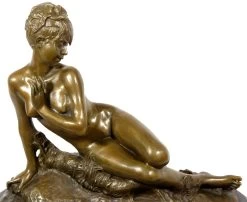 Art Nouveau Bronze – Young Girl Bathing – Signed Leon Bertaux