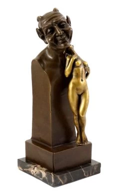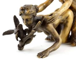 Bronze Figure – Faun Seduces A Maid – Bergmann-stamp – 2 Pieces