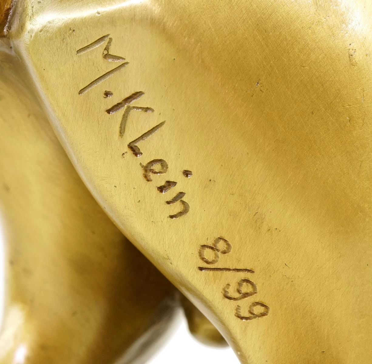 With this fantastic bronze sculpture, the artist Martin Klein explores new horizons and presents us with a fascinating bronze statue that has a rather interesting synergy between the base and bronze figurine. The product depicts a minimalistic, contemporary bull figurine, which possesses slightly cubistic features in its reduced design, while at the same time giving off an aura of only slight abstraction. Thereby, the combination of angular and flowing parts is expertly highlighted by the mostly polished high-gloss surface. Only the feet of the bull are presented in a darker colour. The robust, greyish-brown marble base accentuates the motif and plays an active part in this depiction thanks to its unique form and opulent size. This is thanks to the bull’s hind legs, which serve as a connection between the statue and the base. This animal figurine is made of 100% bronze, it is exclusively limited to 100 pieces and serially numbered. It bears the signature of the artist.