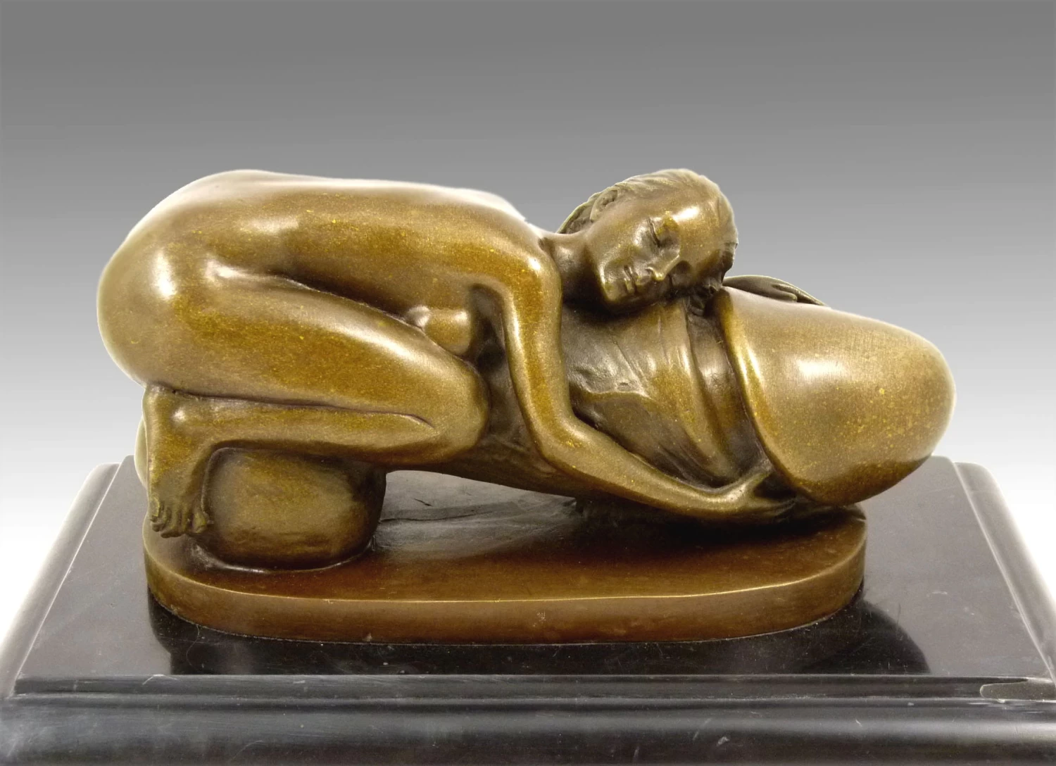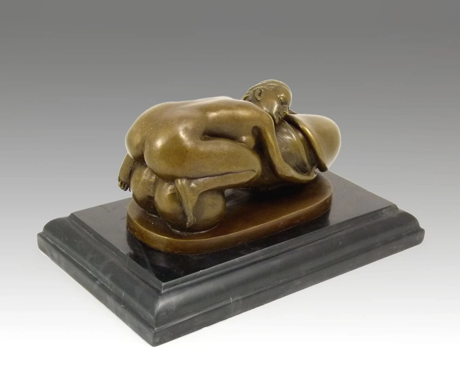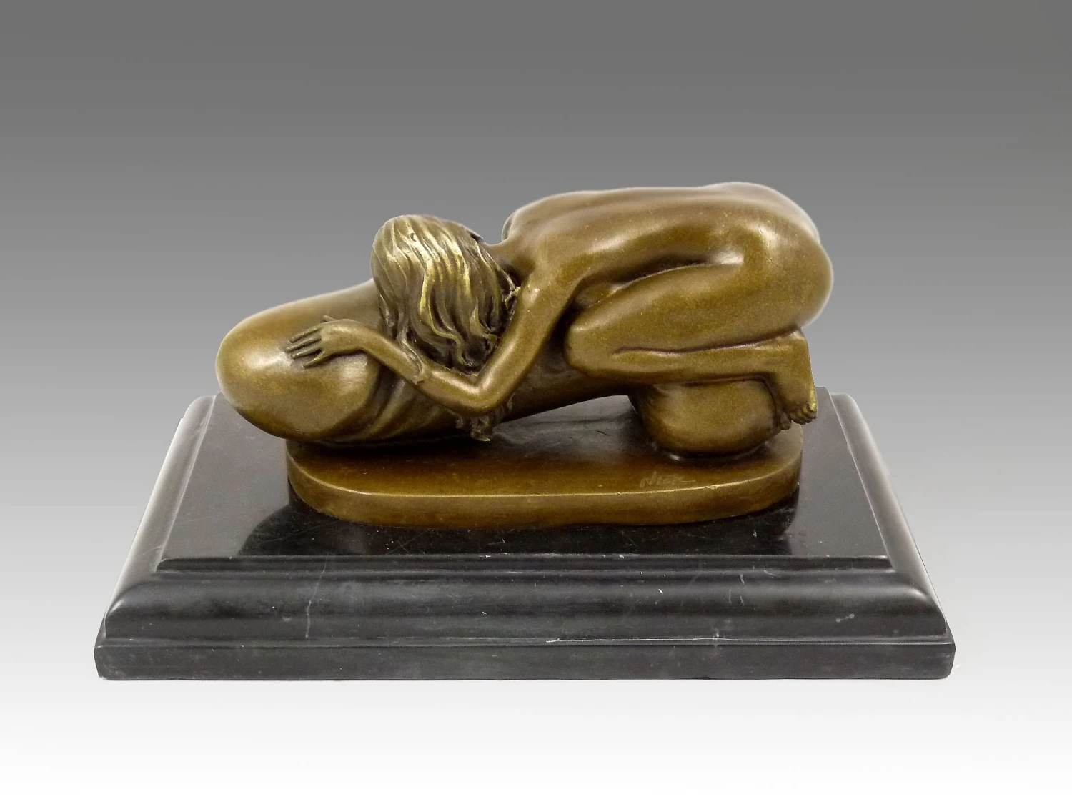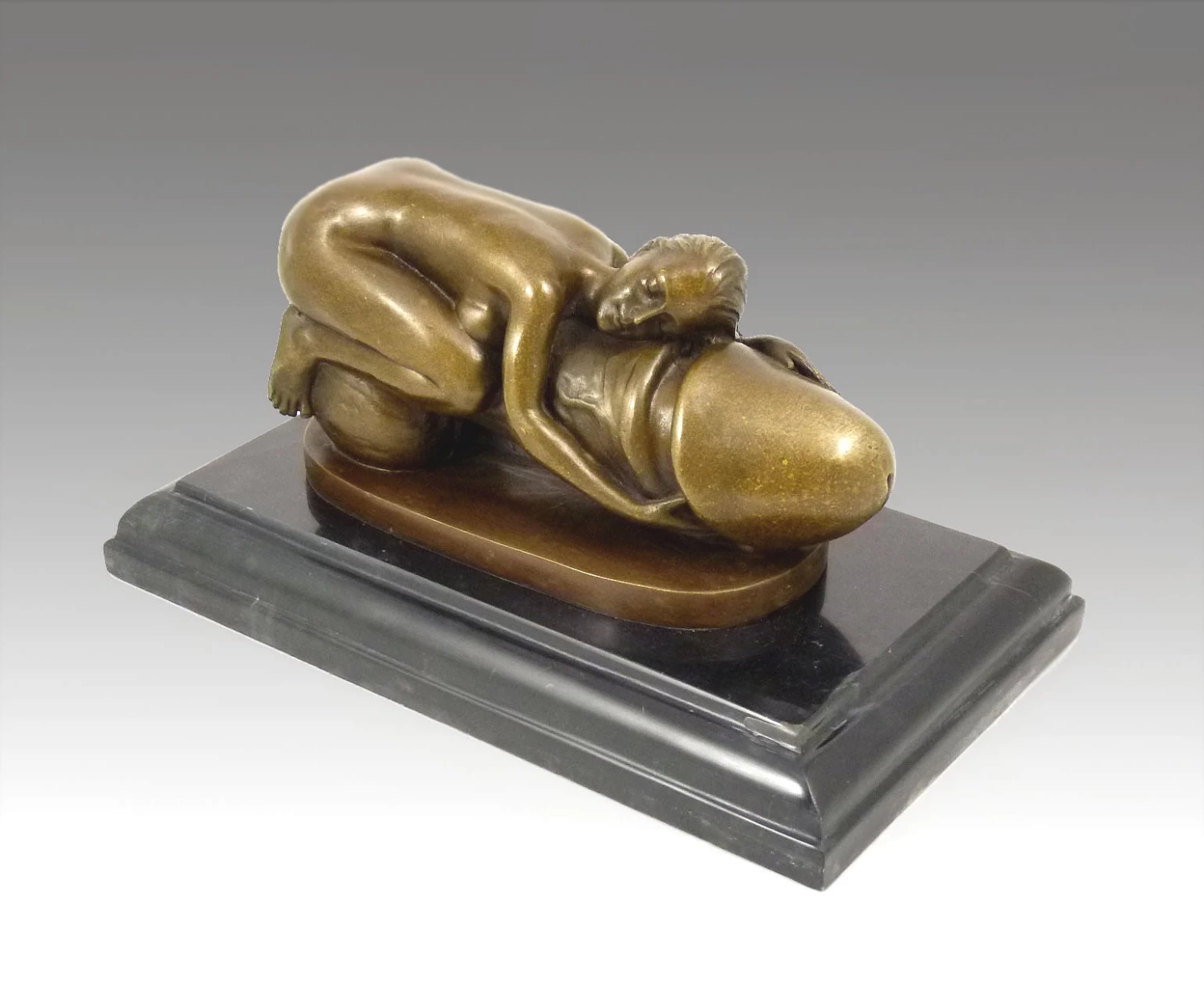 “Erotic Bronze- naked girl lying on huge penis- signed M. Nic”