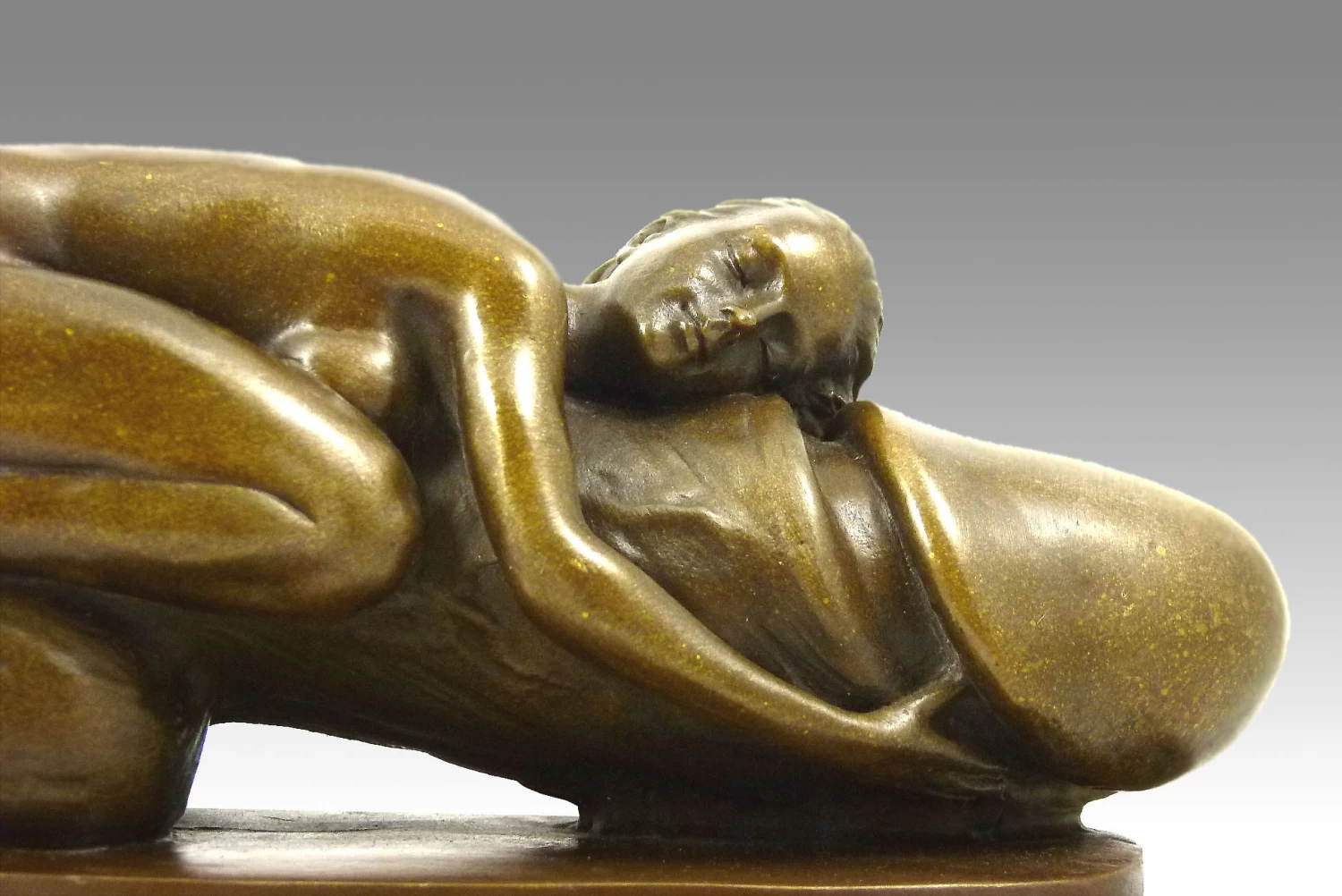 This beautiful erotic bronze sculpture of the sleeping girl was made by the artist M. Nick and is an image of the beauty from the famous Erotic Vienna Bronze as well as of the male sex. The penis is not just a male biological feature but also a well-known symbol of fertility. While a flaccid penis is small and soft an erected penis is stiff and stands tall than the non erected (flaccid) version. And like almost all other attributes of the male body, girth and length of the male penis is variable between single individuals of one species. The penis of the human as well as the penis of the mammal is built in the same anatomic way.