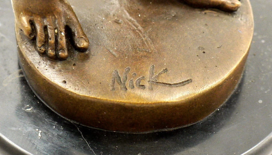 “Erotic Bronze – Standing man with erected phallus – by M. Nick”