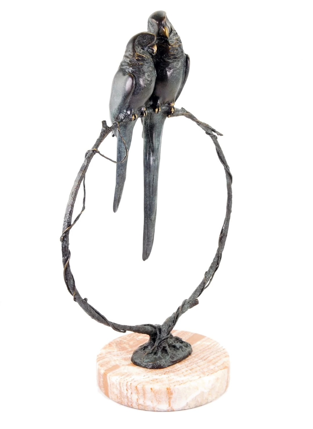 Parrots, cockatoos, macaws – not everyone knows the difference between them. You have to be an expert, or at least an interested layperson. You can find a lot of depictions of colourful birds in the fine arts – realistic and abstract, classical or contemporary. Parrots just have a lot of charisma – which is without a doubt proven by this contemporary bronze statue by Milo.