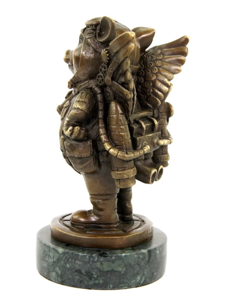 “Limited Steampunk Pig – Bronze Statue Pilot by Martin Klein”