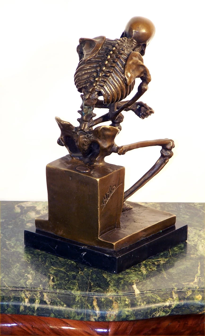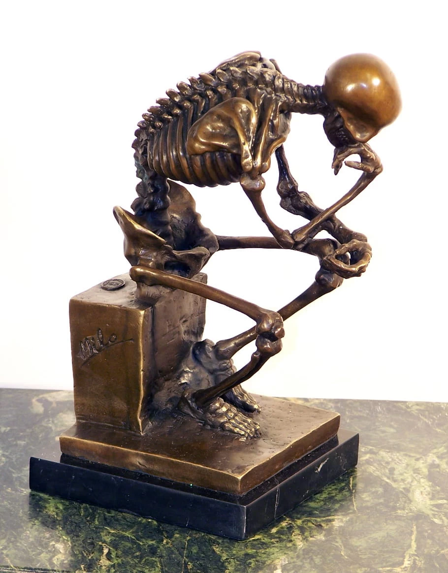 “Modern Art Bronze on Marble -Skeleton (The Thinker) after Rodin”