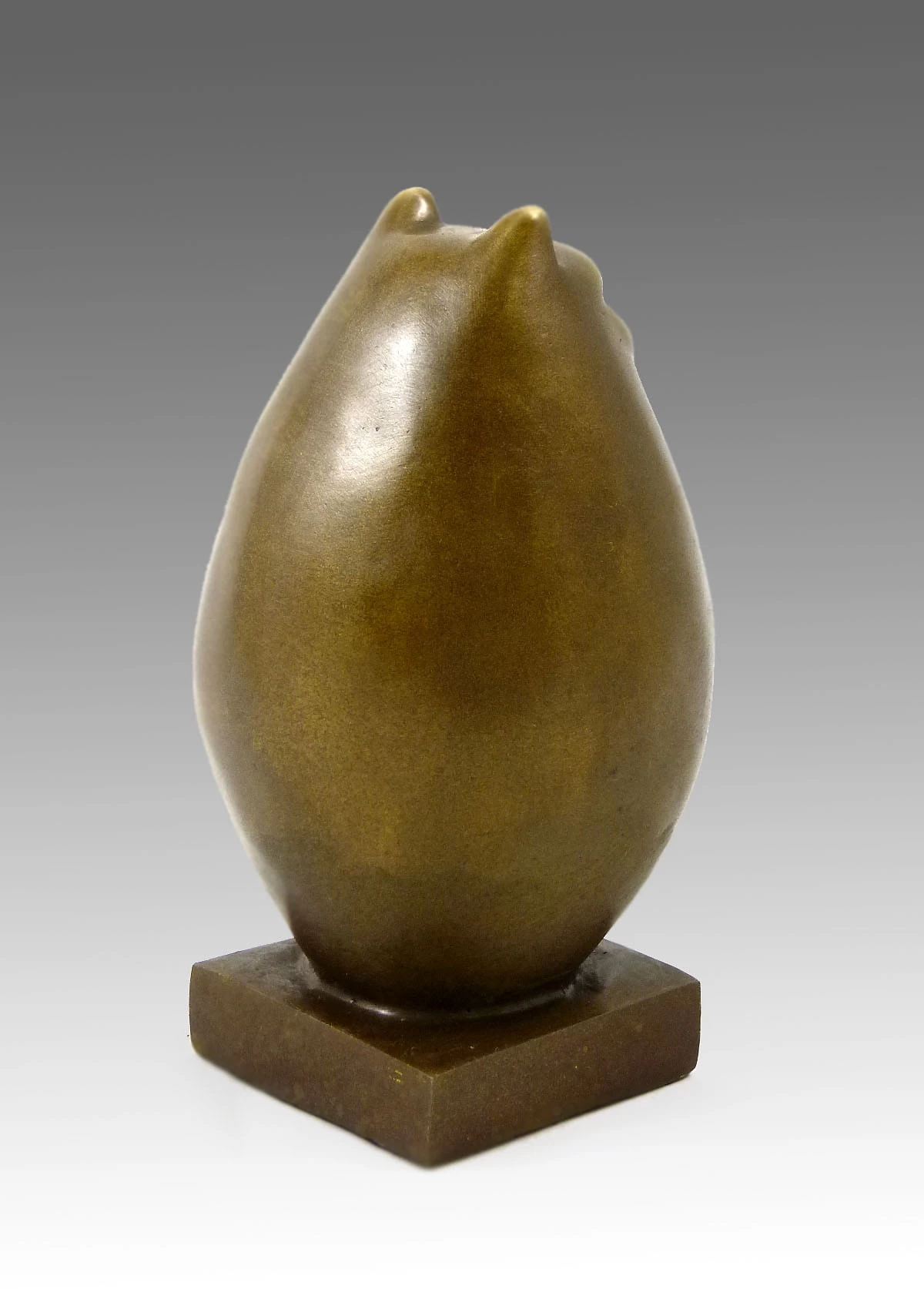 This nice Modern Art animal sculpture was created by the Colombian sculptor and artist Fernando Botero. It shows a bulky cat that is sitting on a small bronze base. With his sense for different shapes Botero made the bronze figure very plain and reduced it to simple geometric forms. Nevertheless it can be unambiguous recognized as a cat. The plump bronze also reminds of a ninepin. The funny Modern Art figure is made of 100% bronze and is signed by its sculptor Botero.