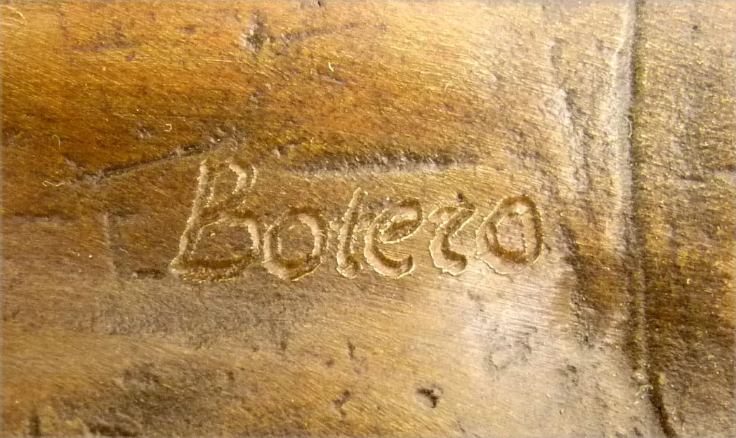 This remarkable Modern Art animal bronze of a funny fat cat was made by the famous Colombian sculptor Fernando Botero. The artist was born in 1932 in Medellín and is one of the most famous painters and sculptors of Latin America. He already started painting when he was twelve years old and exhibited his first works in 1948. In the early fifties he developed his own style, in which he works with all facets of human life. He is nowadays especially known for his remarkable big and plump sculptures and figures. In 2008 his life was made into a film with the title “Botero – Born in Medellin“.