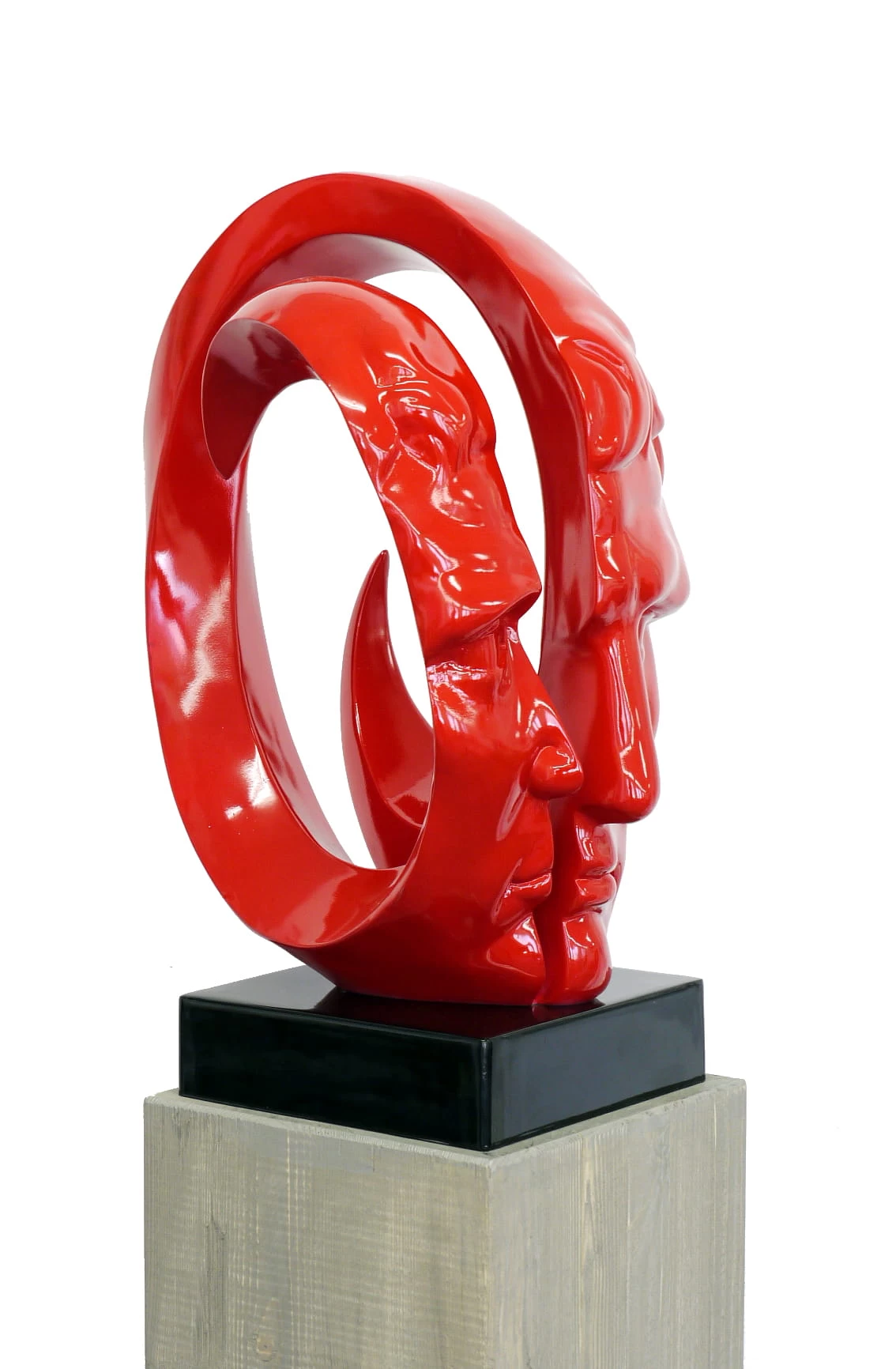 The modern art sculpture “Jekyll and Hyde” is a fantastic piece of art made by the German artist Martin Klein who tried to interpret the myths of two souls living in one body. His sculpture was made of fibreglass and is really impressive because of the unusual and very modern design; the head of “Jekyll and Hyde” was split in two parts but is still not completely divided into two parts. The sculpture is looking like a roll with a face at its front. “Jekyll and Hyde” is a modern sculpture with a very eye-catching colour – fiery red and a smooth designed surface. A simple black subsoil perfects the modern art fibreglass figure of Martin Klein.