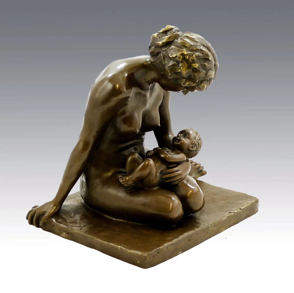 The bronze „Mother and Child“ was created after a design of the famous German sculptor Wilhelm Lehmbruck and is showing a undressed mother holding her little child in her arm. The so-called “Mother-and-Child-Motive”, that Lehmbruck realized with this sculpture, was part of his artwork since his first travel to Italy in 1905. The original of this sculpture was created by Lehmbruck in 1907 and was made of gypsum. Our recast was made of 100% finest bronze and is signed with “W. Lehmbruck”. Lehmbruck made first drawings of „Mother and Child“ in 1905. The sculpture „Mother and Child“ can be considered as a typical Lehmbruck sculpture, because both persons are pictured with estranged facial expressions. Furthermore the sculpture has a less detailed and also kind of vividly looking surface. This Modern Art sculpture is a real masterpiece, because of the great motive and because of the innovative depiction of the two humans.