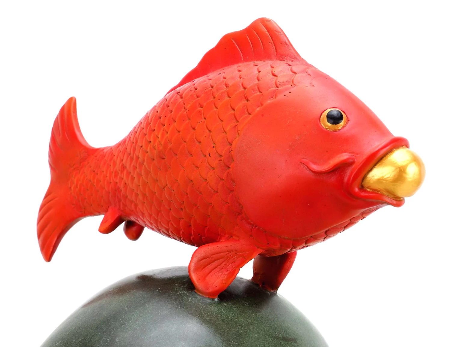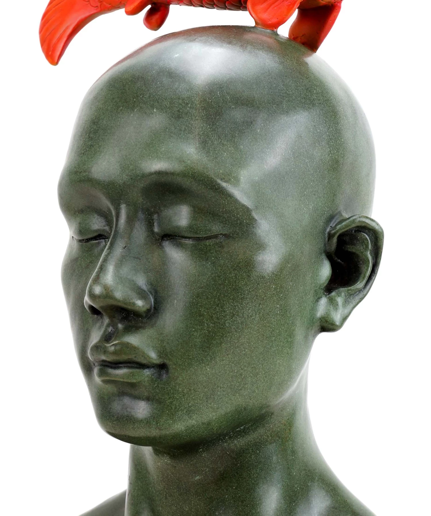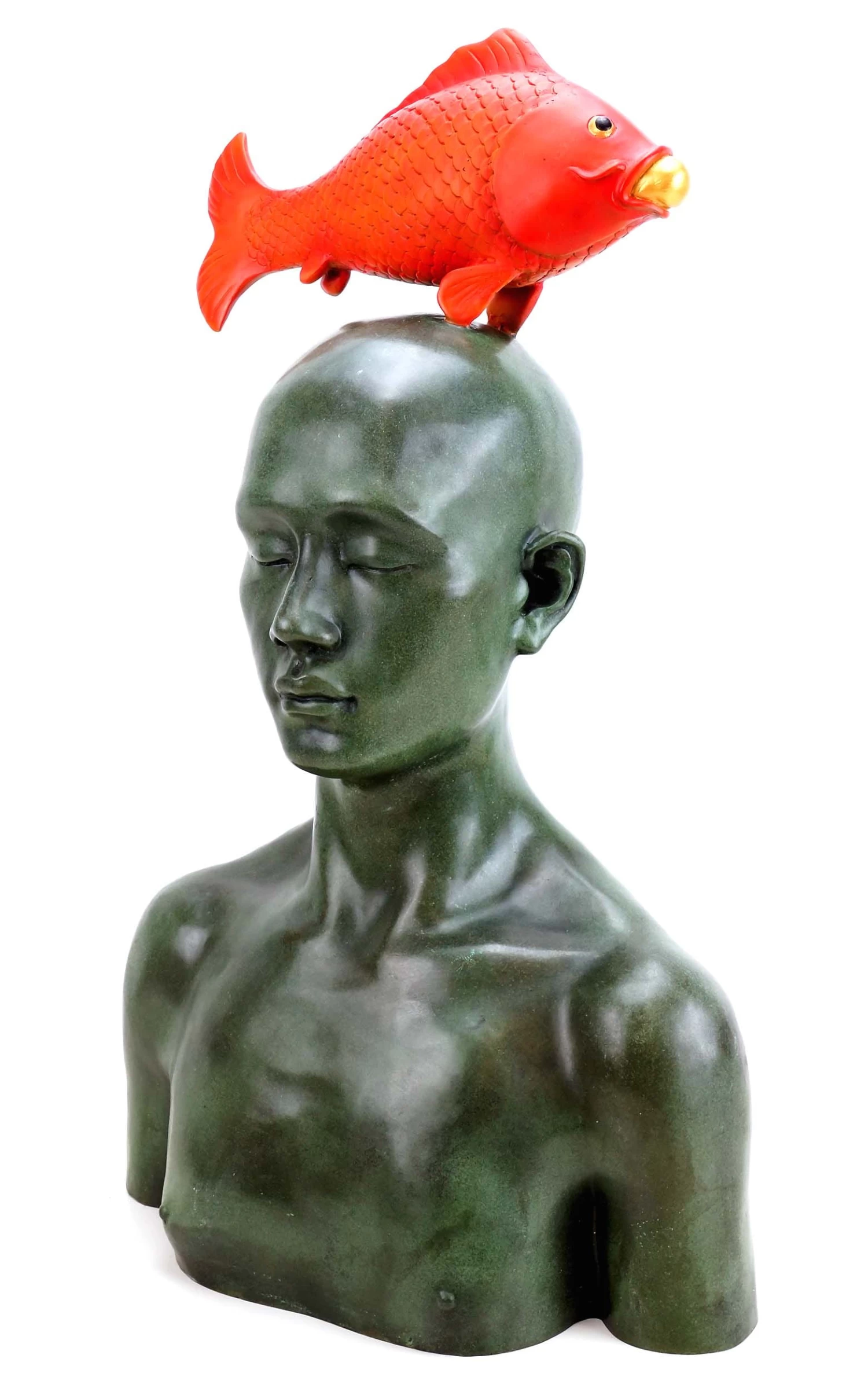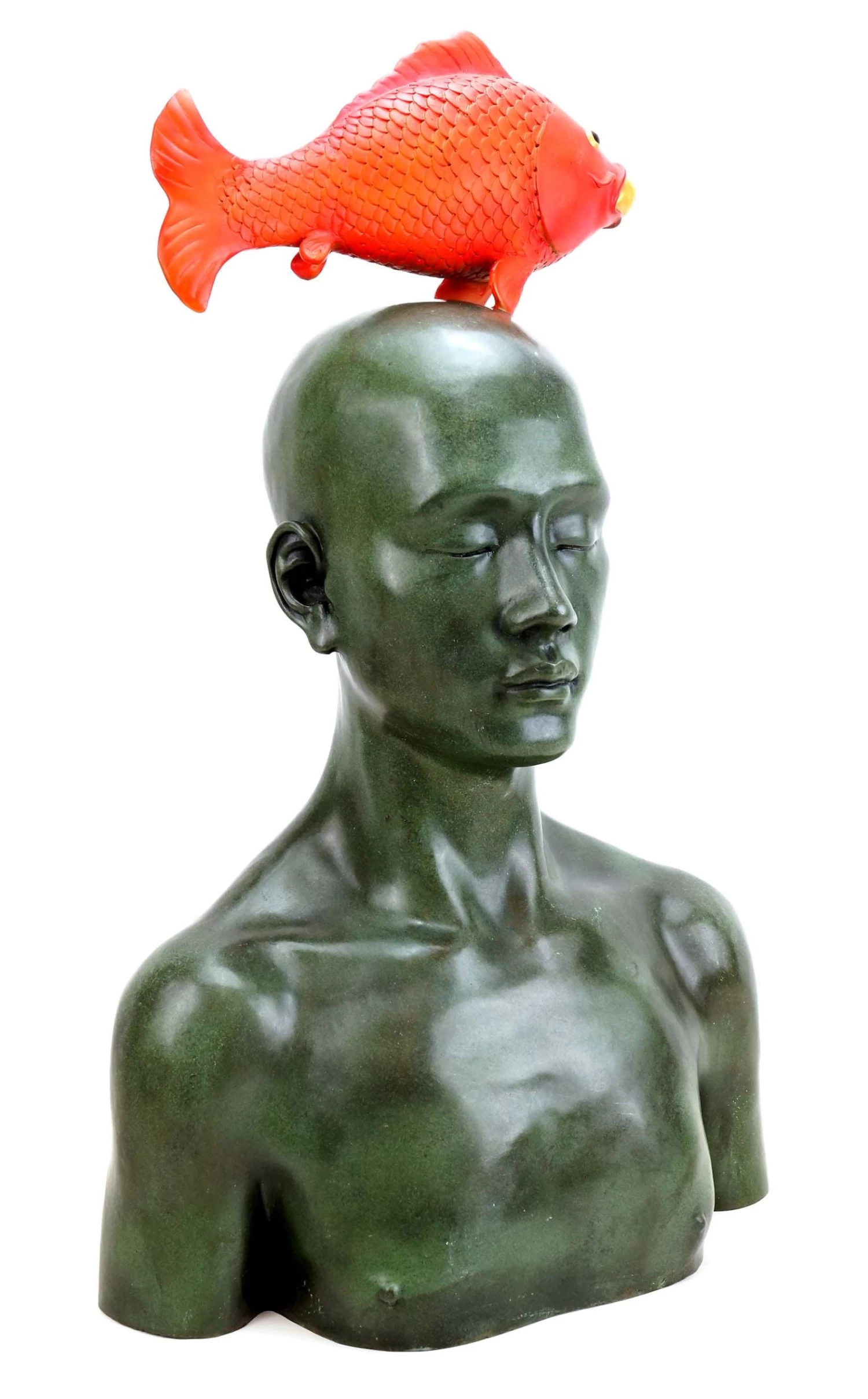 “Modern Bronze Figurine – Man With Lucky Koi – signed Martin Klein”