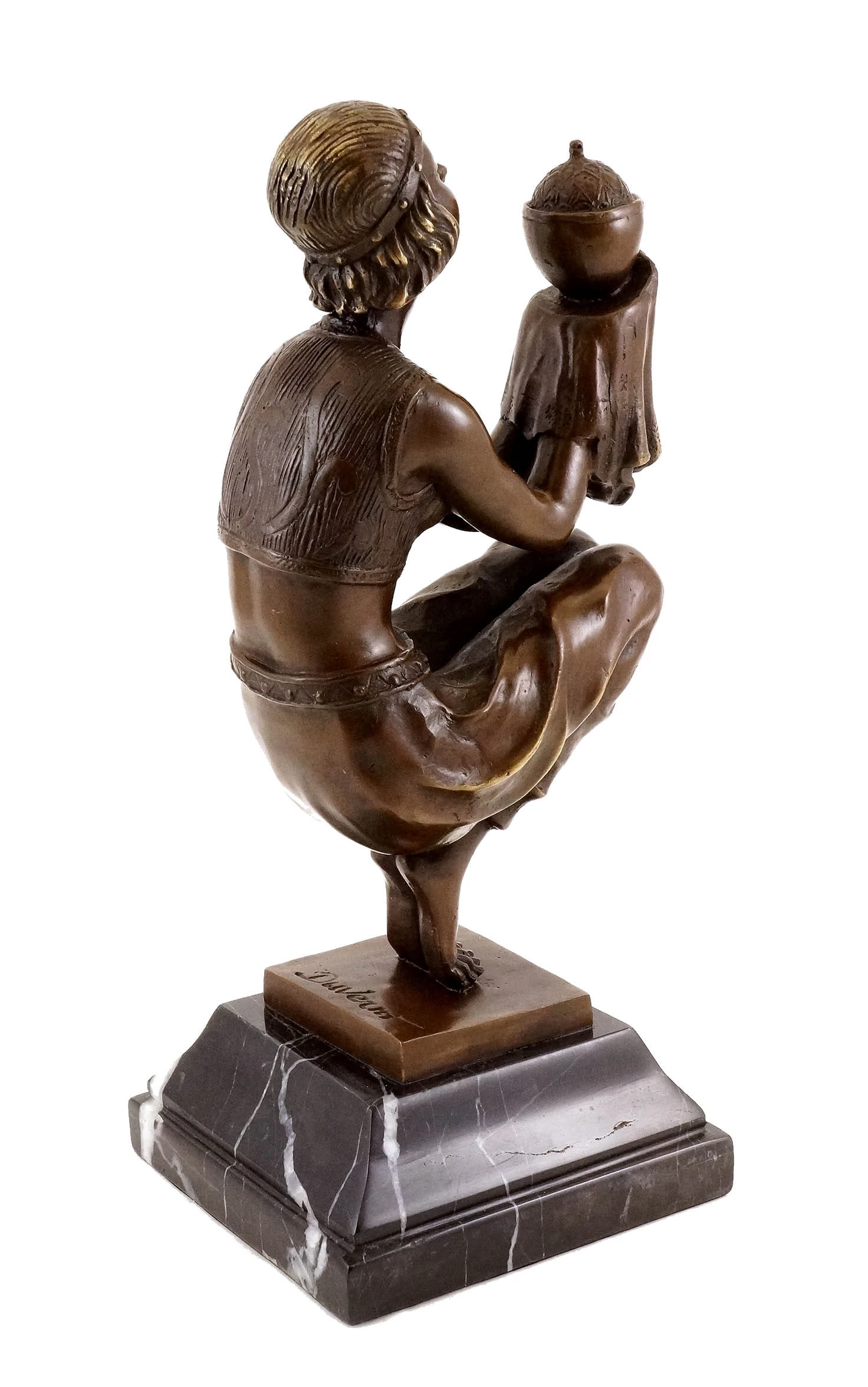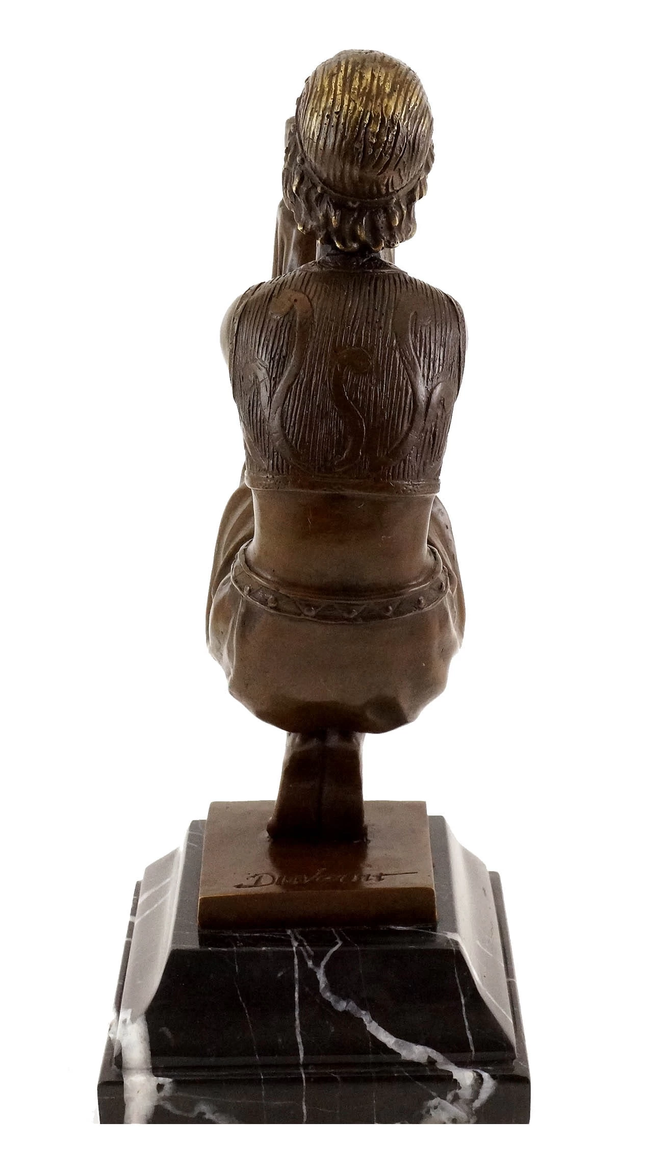 The French Art Deco artist Georges Duvernet (1870-1955) has made a name for himself especially because of his numerous bronze sculptures. His creative period falls mainly in the 1920s and 1930s. In addition to animal sculptures Duvernet depicted three-dimensional illustrations of people in athletic positions. Among his most important sculptures is the “Dancer with three Rings”, which is also available as a high quality museum cast in our shop.