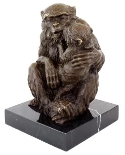 Bronze Mother Monkey With Her Young – Animal Sculpture – Signed