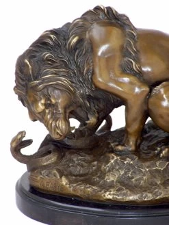 Lion Fights Against A Snake – Bronze On Marblebase, Artist Signed