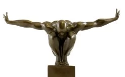 Modern Bronze Figurine – Man With Lucky Koi – Signed Martin Klein