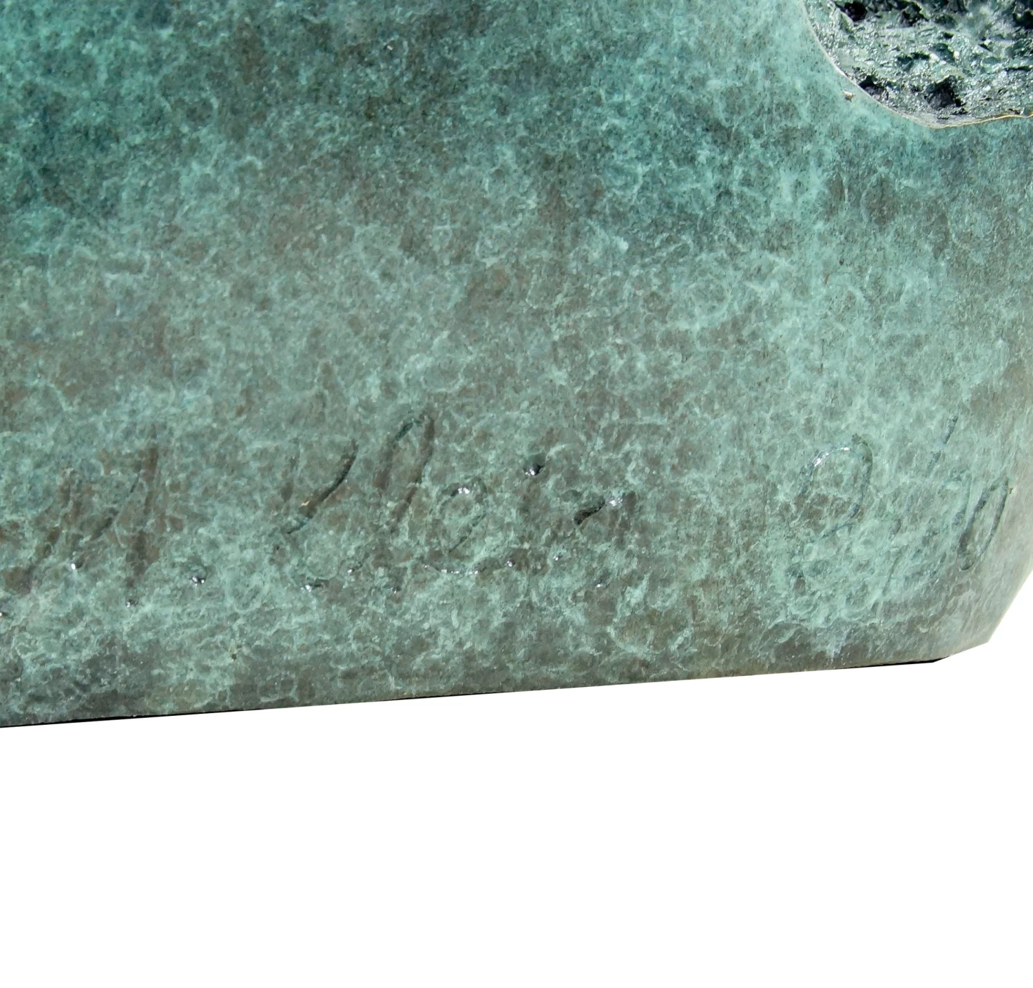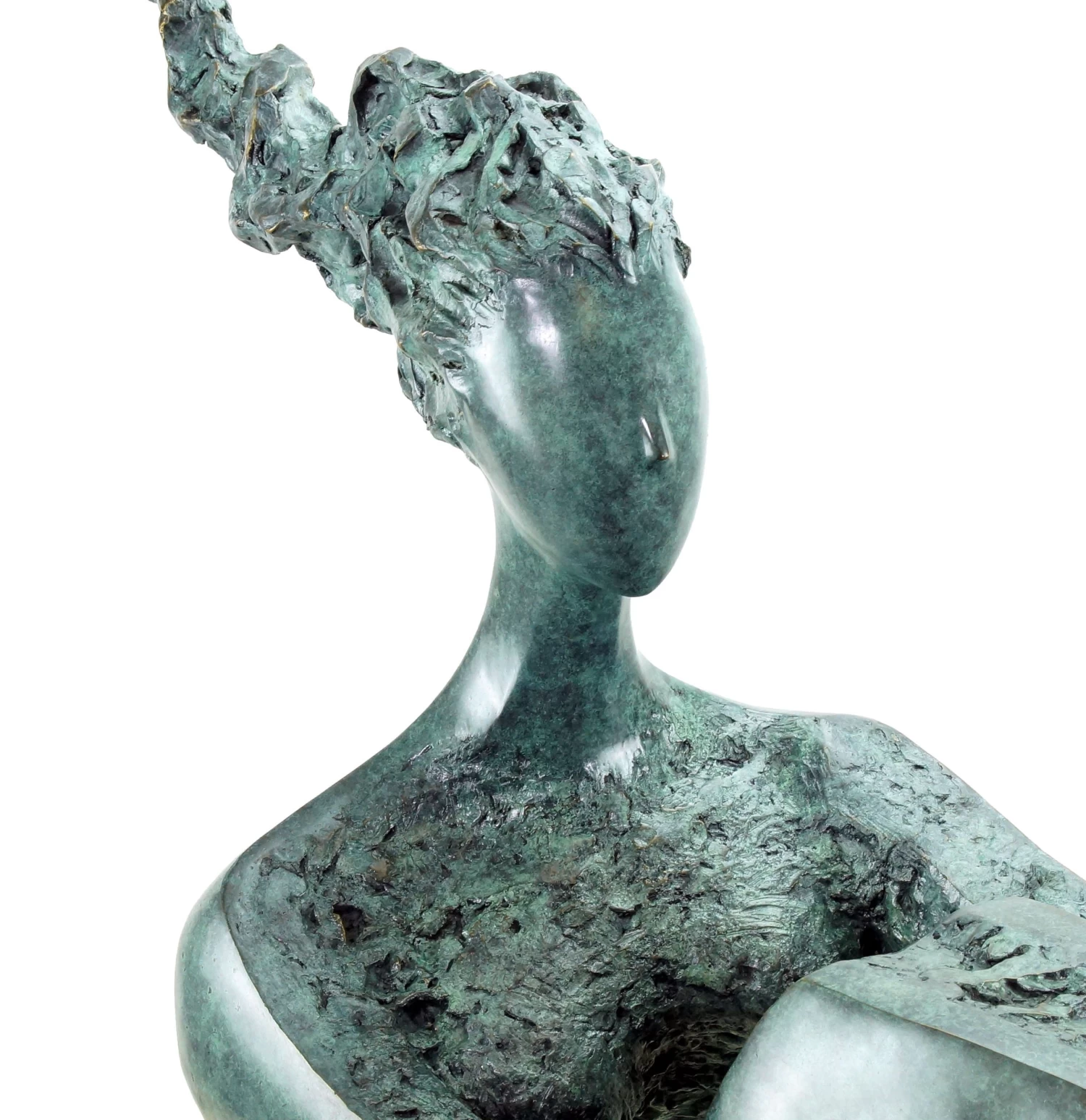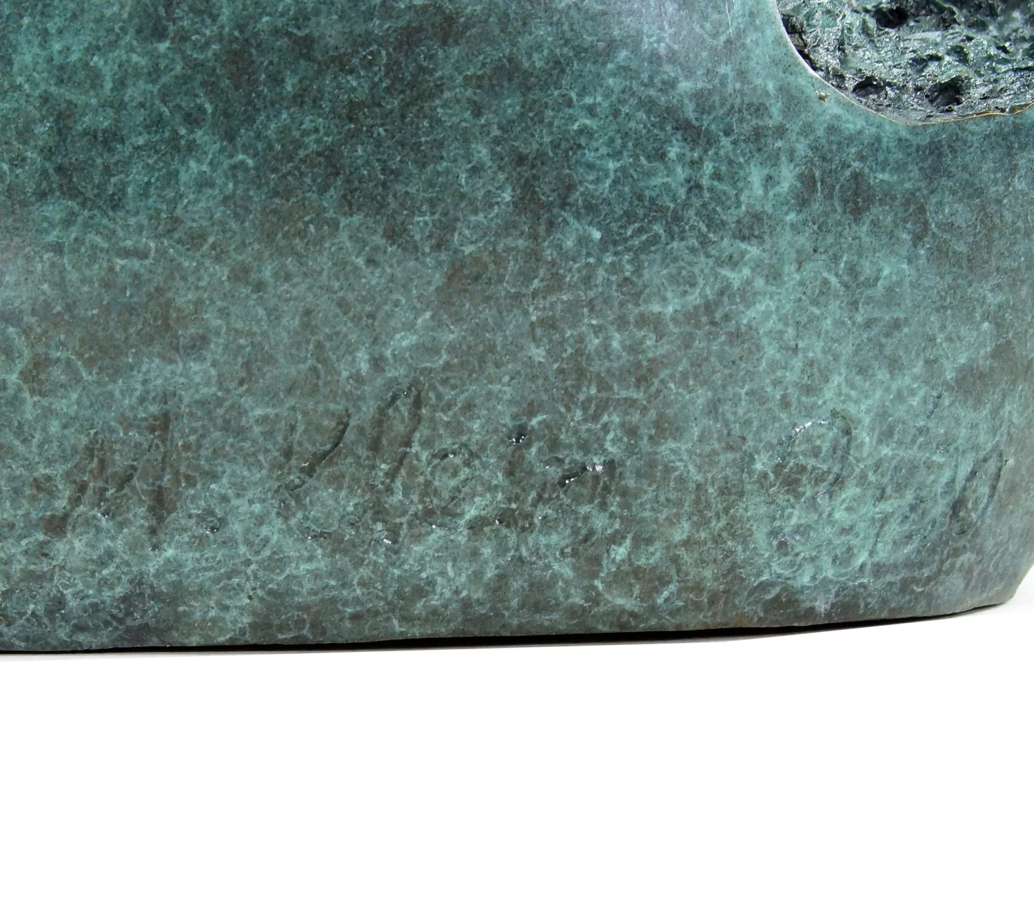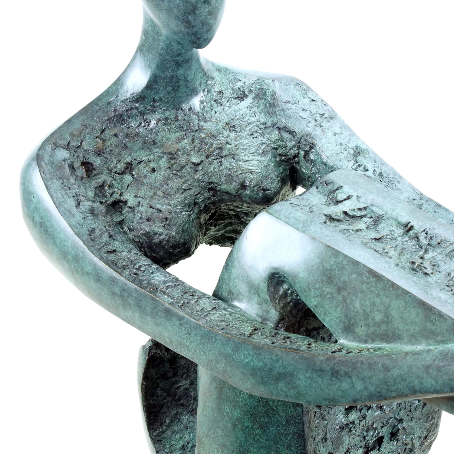 This opulent bronze statue by the artist Martin Klein depicts an abstract female nude that is characterised by its flowing shapes as well as its fragmentary representation. The freestanding sculpture has no base. The bottom of the abstract woman figurine serves as a direct connection to the ground. Thus, this extensive bronze statue seamlessly blends into its surroundings and can be used as a versatile decorative element. The limited bronze statue can be placed as a decorative figurine both in the interior as well as in the garden. The female figurine has a green patina, as it is made from 100% bronze. This means that it is weatherproof and thus makes for an excellent garden sculpture. The contemporary sculpture is exclusively limited to 20 pieces and serially numbered. It bears the signature of the artist und fits into a series of luxurious sculptures that Martin Klein has created over the past years. This particular female nude is a horizontally oriented motif that has a very captivating aura when it comes to spatial design. Due to its almost minimalistic design, the abstract large-scale sculpture is suited for making a statement in both private as well as public spaces.