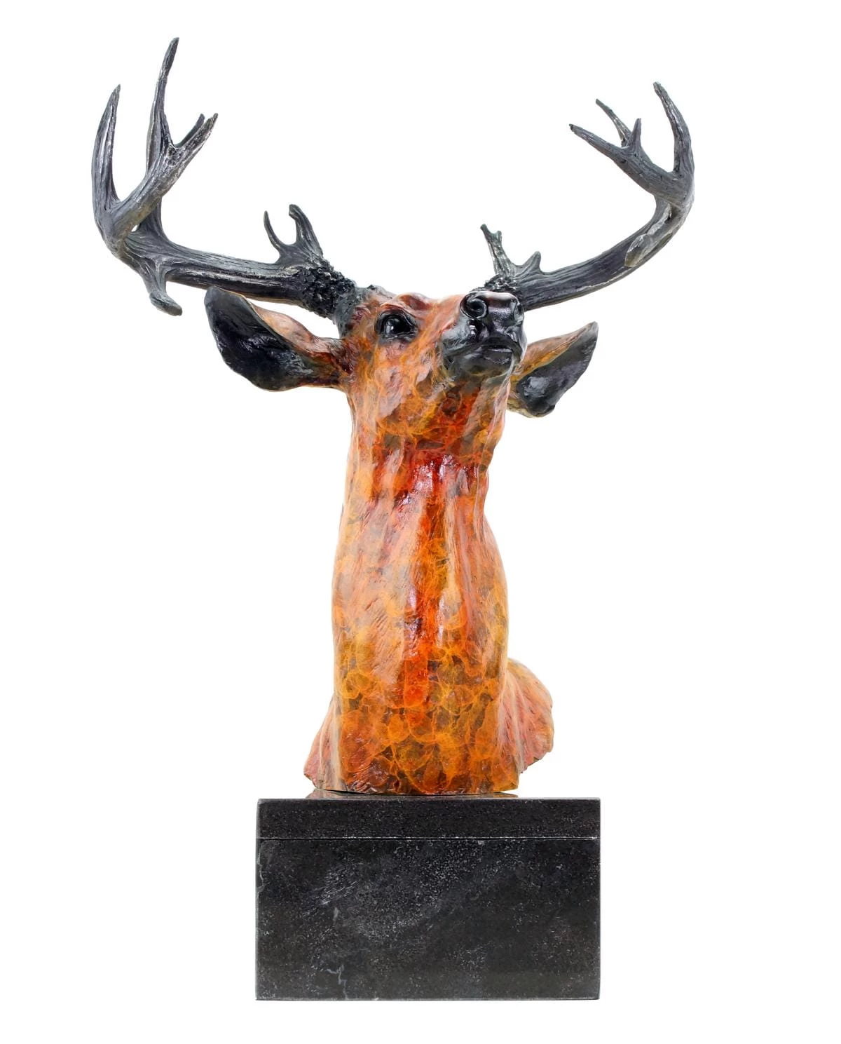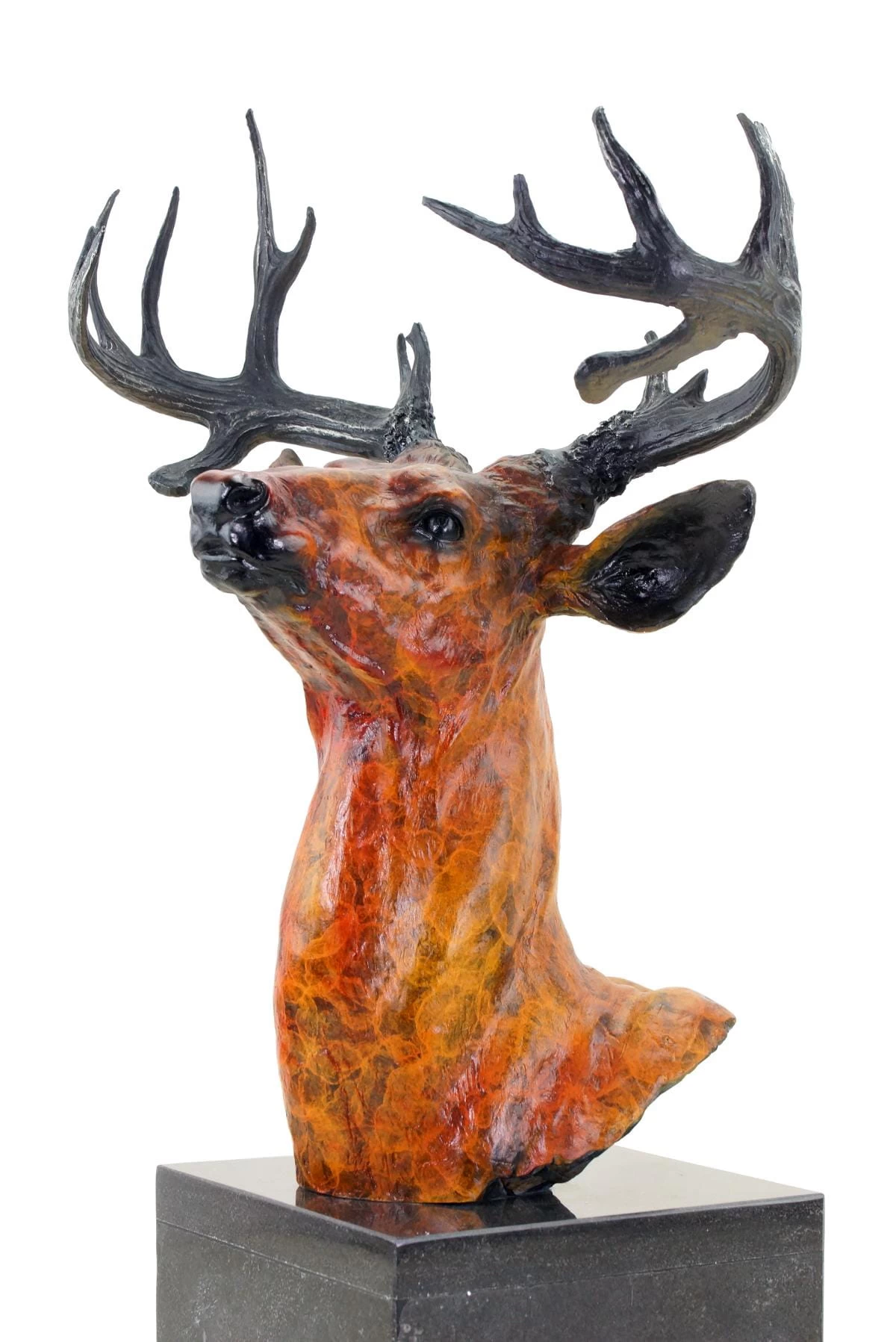 “Tall Deer / Stag Bust – Bronze Figurine on Marble – signed Bonheur”