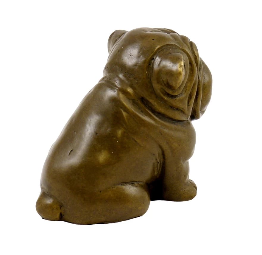A cute round-cheeked „Waiting Dog“ insists on his place. The sculpture is made from 100% bronze and is a loyal companion for art enthusiasts and dog lovers. This carlin sits dutifully and waits patiently without barking,along with the folds on the fur which are elaborated wonderfully and everyone would like to stroke this little charmer immediately. With the upturned nose the dog looks very convinced, probably because he can already sniff his owner out. The light glance of valuable bronze effects the silky opalescence of coat, and this animal figure will be a delightful highlight in each room. The bronze has the stamp of Bergmann Vienna.