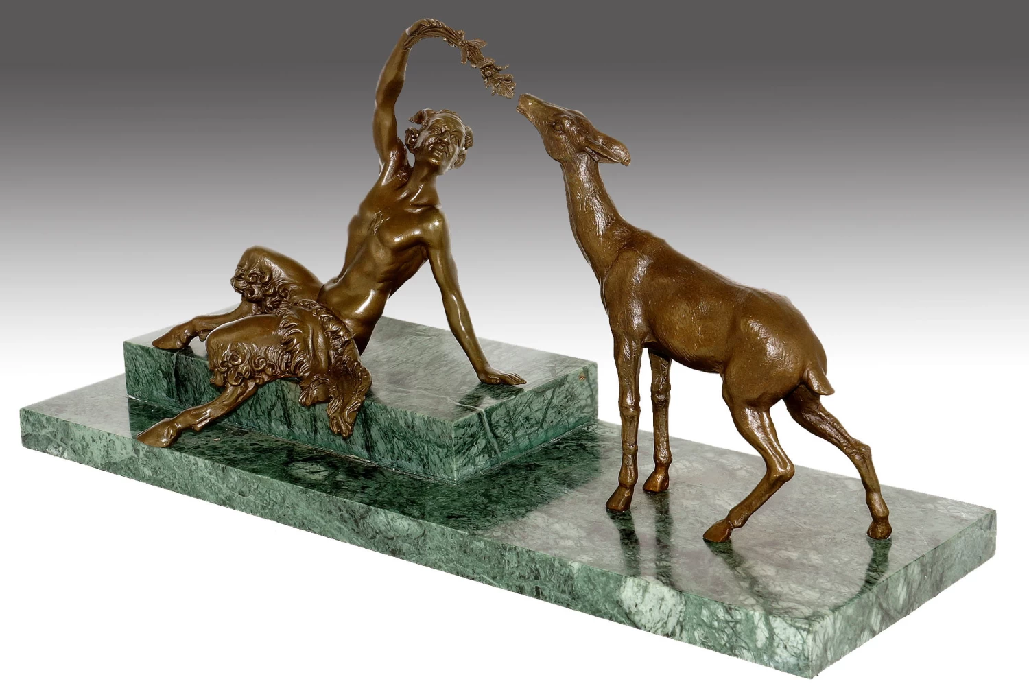 “Vienna Bronze – Satyr lures Deer – Signed Bouraine”