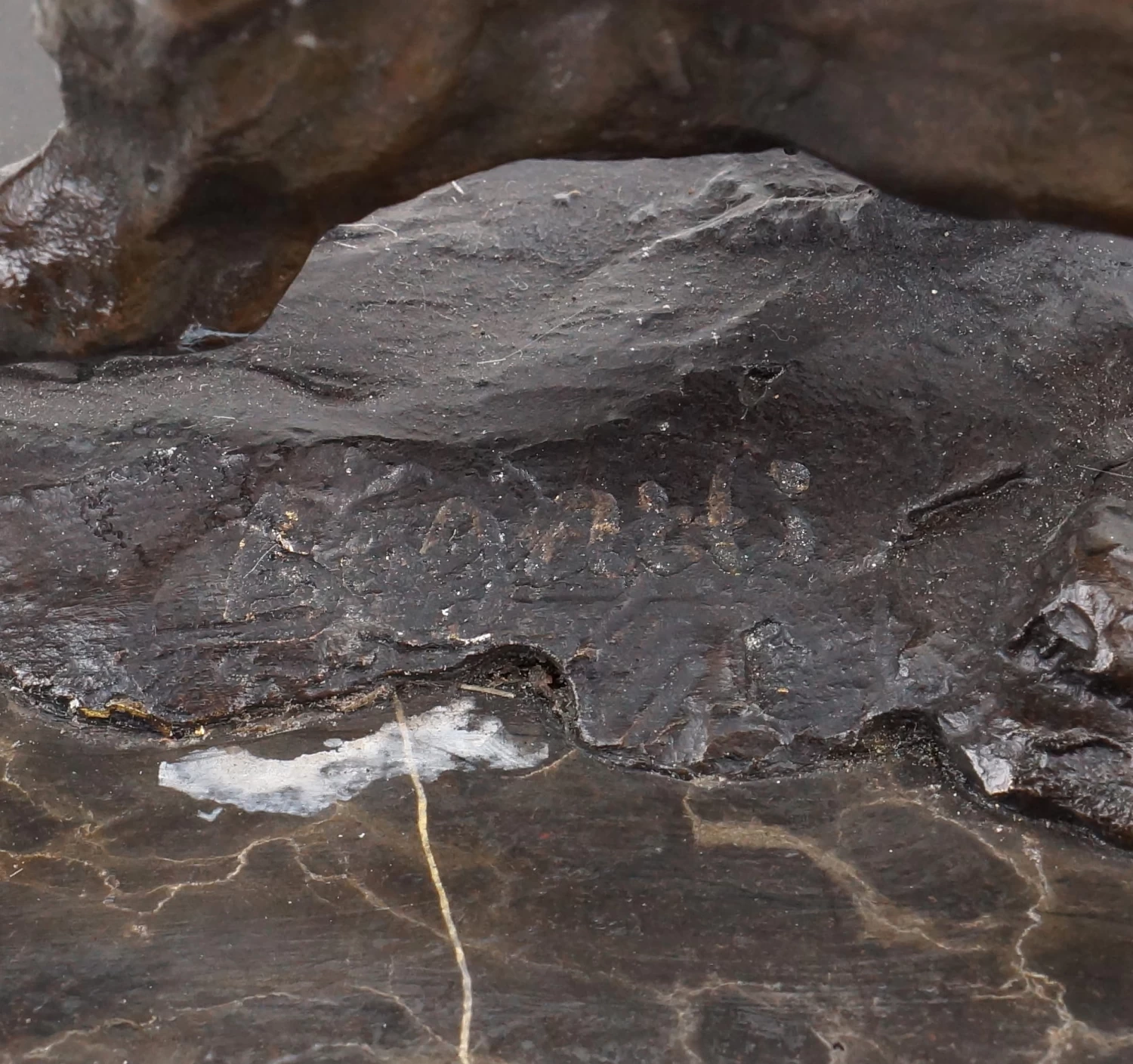 In 1904, the Italian sculptor Rembrandt Bugatti designed his bronze figurine Walking Panther (Panthère marchant). The sculpture seamlessly fits into the artist’s overall work, which encompasses more than 300 statues. From an early age on, Bugatti specialised in the authentic depiction of exotic animals, which he studied in Paris’ Jardin de Plantes. Stylistically, the young sculptor worked outside of the conventional mechanisms of idealisation. For Bugatti, every animal was an individual being, which is why he always tried to capture the unique characteristics of the respective animals. Walking Panther is one of his most famous sculptures. This signed animal figurine is placed on a coloured marble base, which skilfully highlights the walking panther figurine. Authentic proportions and the natural dynamic of the motif create an impressive snapshot of this bronze feline predator. One of the first gypsum models of this animal sculpture can be found in the Musée d’Orsay in Paris.