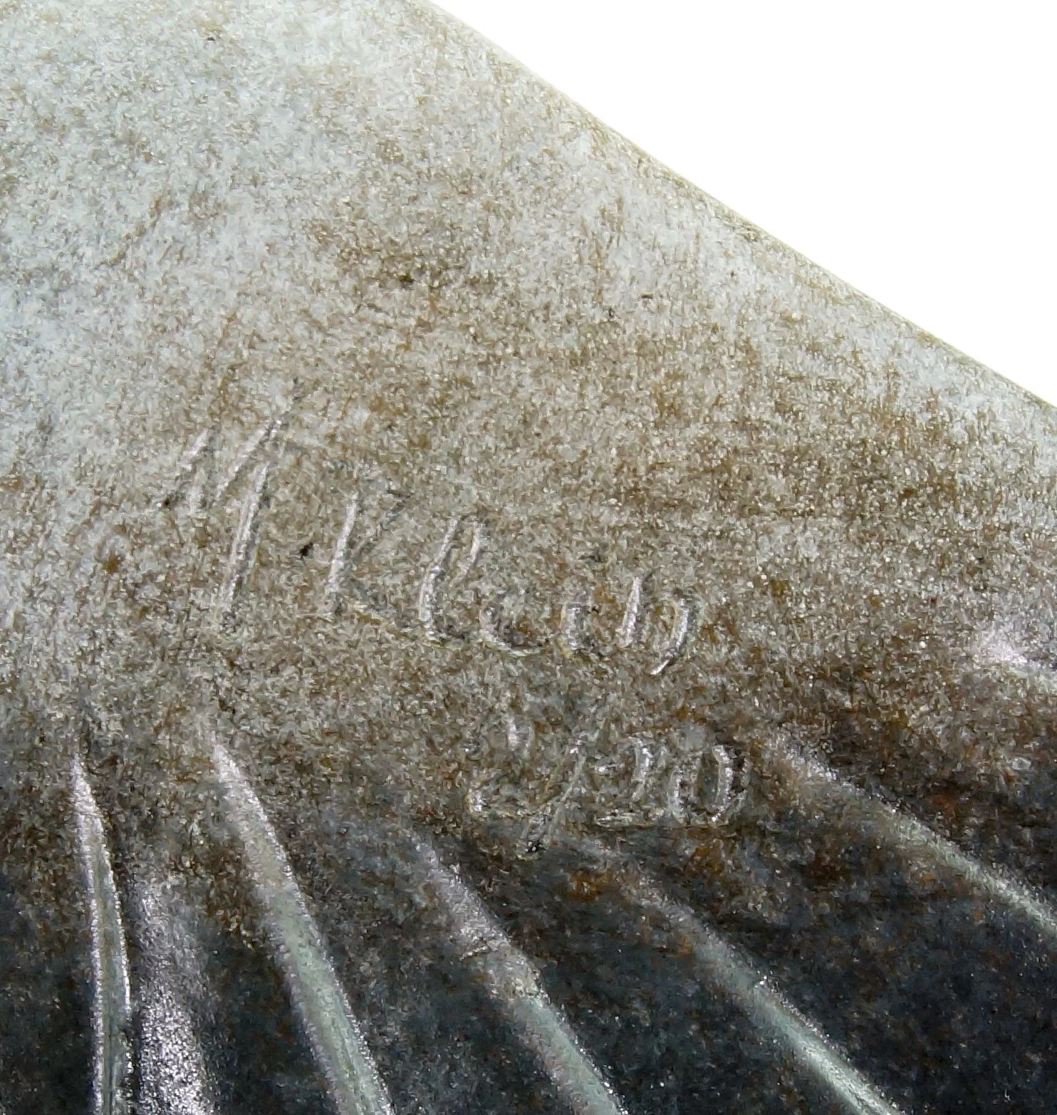 With this exclusive bronze sculpture, the artist Martin Klein takes up the often discussed and artistically interpreted idea of freedom and portrays it in a pictorial way. The result is this complex bronze figurine with the succinct title Ways of Liberty. This statue is limited to 20 pieces and consists of different interlocking elements that are accentuated by an immensely elaborate surface refinement. Part of this statue are geometric parts that give the sculpture a thematic frame in the form of a cube and various rectangles. This abstract basic scenario is disrupted by three authentically depicted doves that serve as the main actors in this motif. They carry the central idea of freedom that Marin Klein focussed on during the formation of this contemporary bronze statue. Another interesting part of this sculpture is the intricate patina that is reminiscent of a delicate porcelain structure. Needless to say, the sculpture, which is placed on a dark marble base, consists of 100% robust bronze. The patinated bronze figurine is serially numbered and bears the signature of the artist.