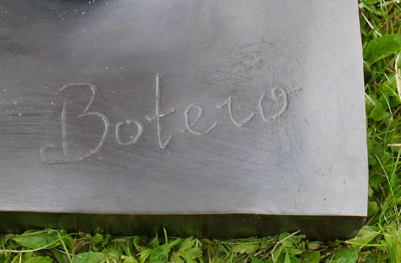 This bronze statue is a high-quality cast of Fernando Botero‘s “Il Guerriero” (Roman Warrior). The sculpture was modelled in 1985. His works feature a figurative style which gives them an unmistakable identity. Botero’s subject is the portly man. Botero’s work is distinguished by a special characteristic: In all his works he depicts the aesthetics corpulent human body. Kings, dancers, bullfighters or – as here – warriors: Botero depicts women, men, daily life, historical events and characters, milestones of art, still-life, animals and the natural world in general, with exaggerated and disproportionate volumetry, accompanied by fine details of scathing criticism, irony and humour. The monumental statue of the naked warrior is ideal for the garden area. The sculpture is signed with Fernando Botero.